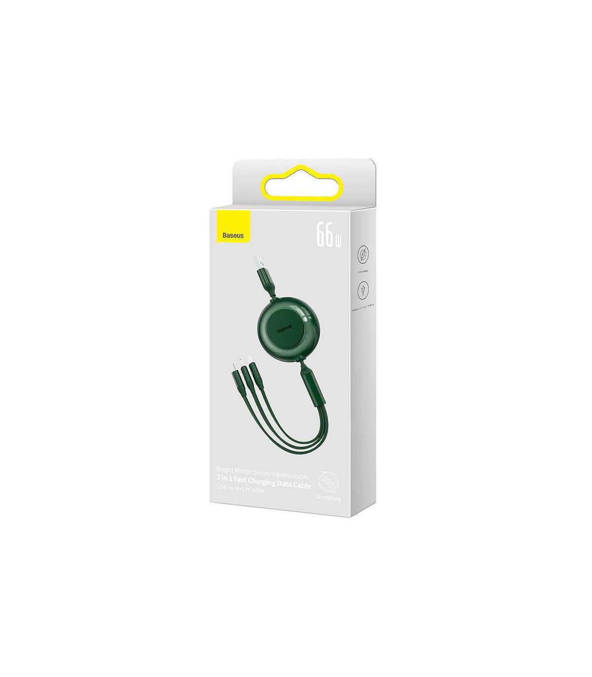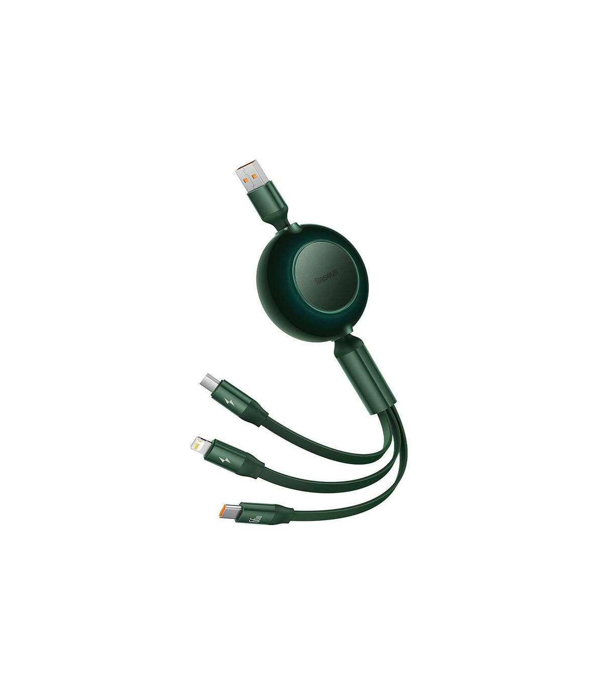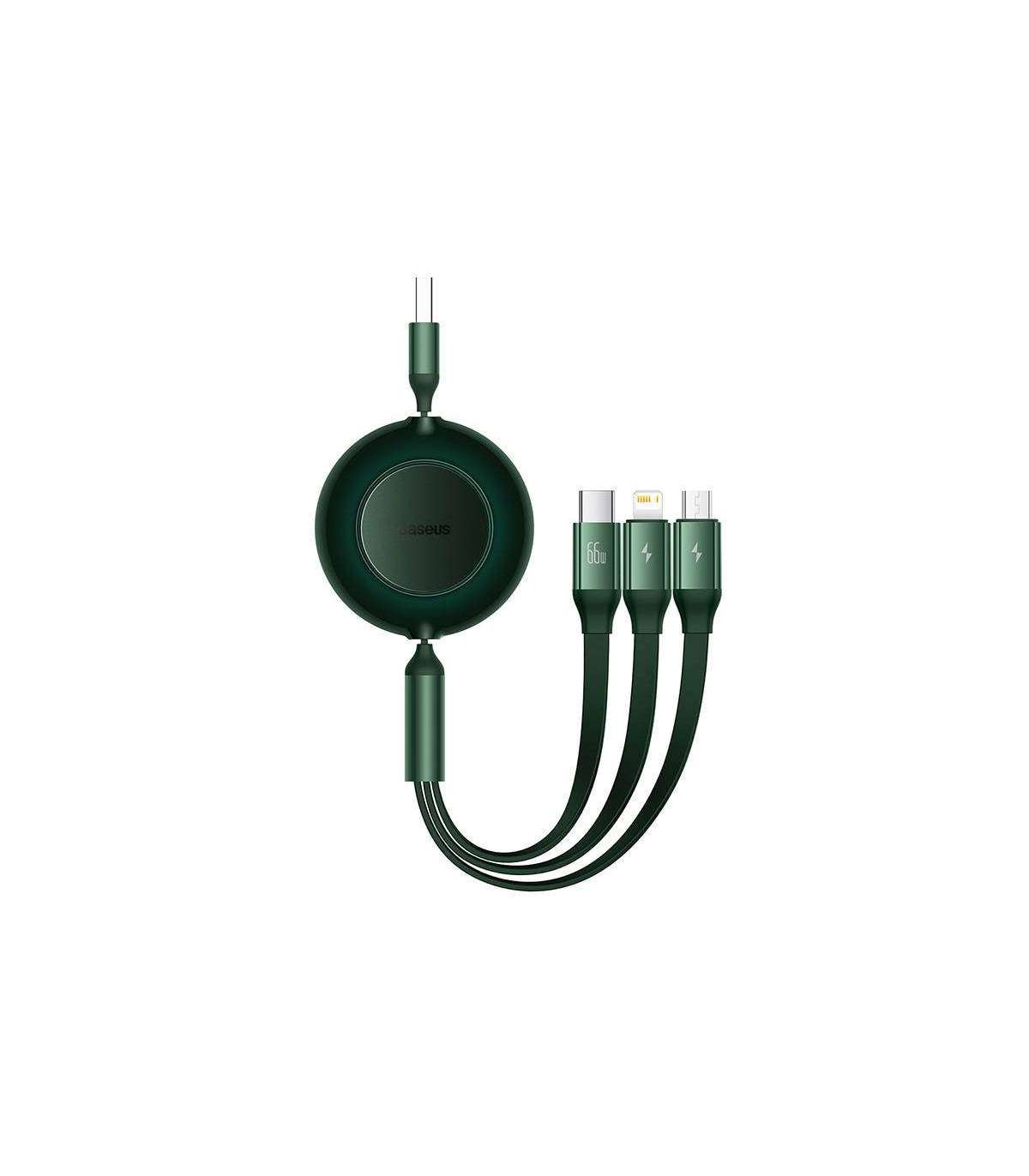 Baseus Bright Mirror 3, USB 3-in-1 cable for micro USB / USB-C / Lightning 66W / 2A 1.1m (Green)