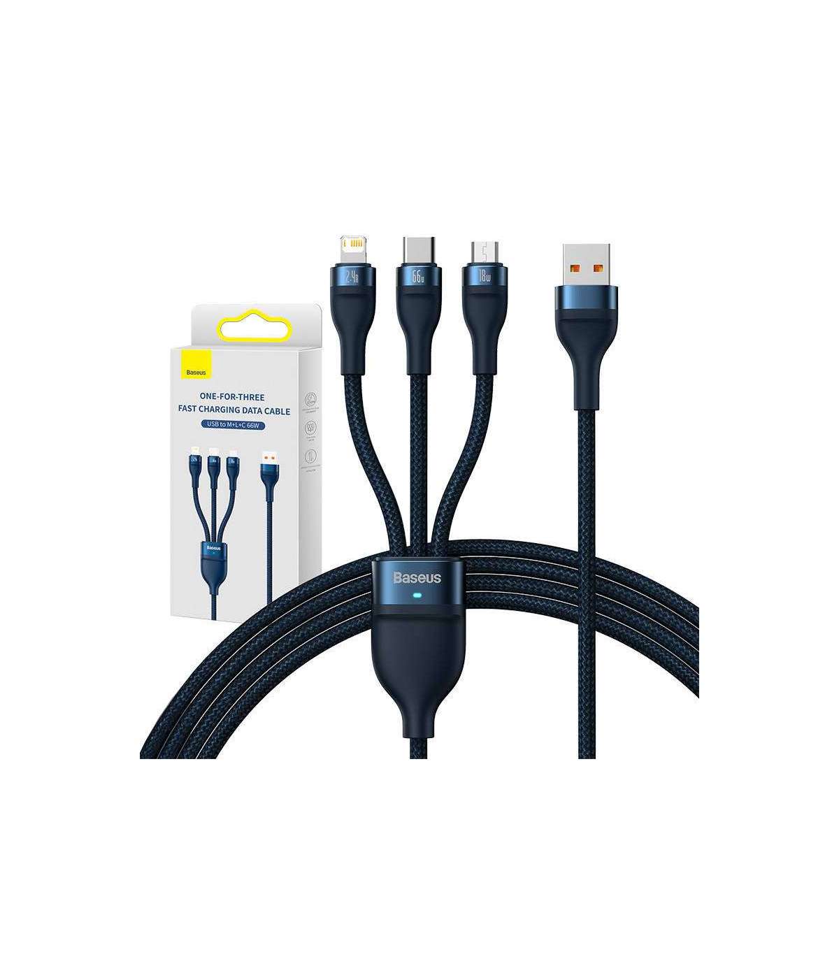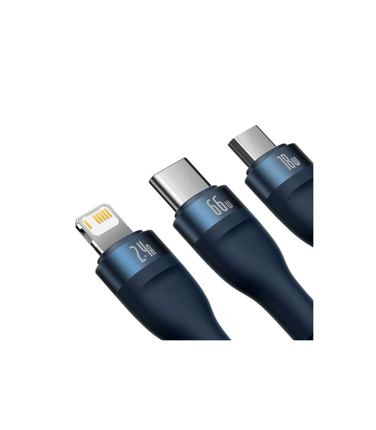 Baseus Flash Series 3-in-1 USB Cable, USB-C + micro USB + Lightning, 66W, 1.2m (blue)