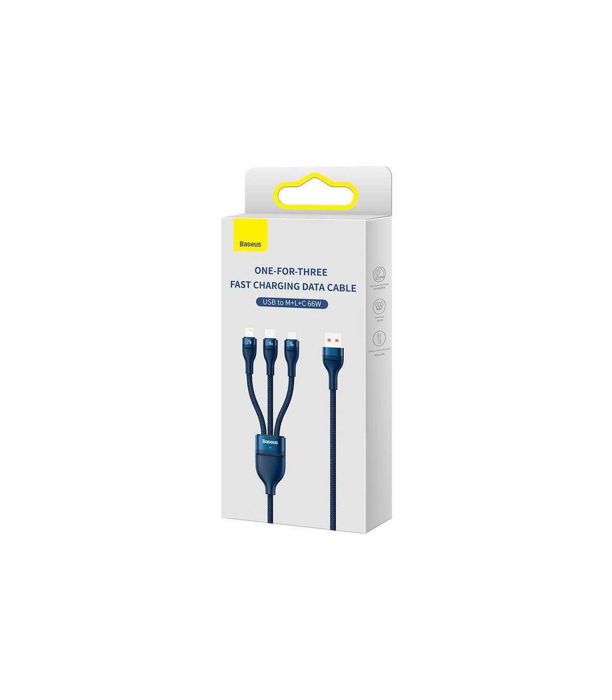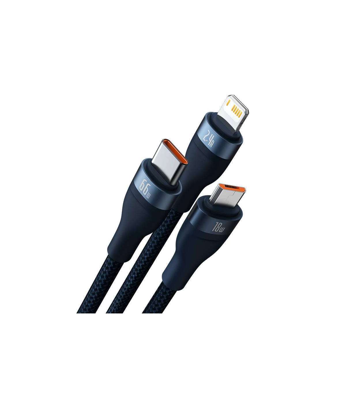 3in1 USB cable Baseus USB 3in1 Baseus Flash Series, USB-C + Micro + Lightning 66W, 1.2m (blue)