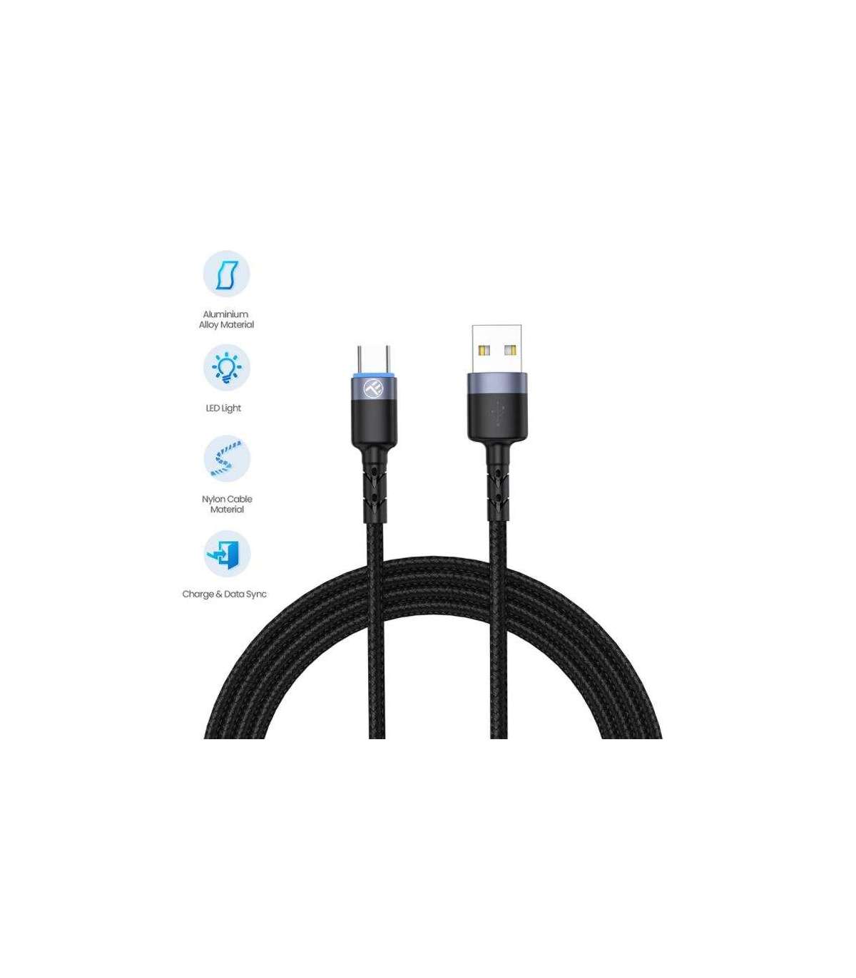 Tellur Data Cable USB to Type-C LED Nylon Braided 1.2m Black