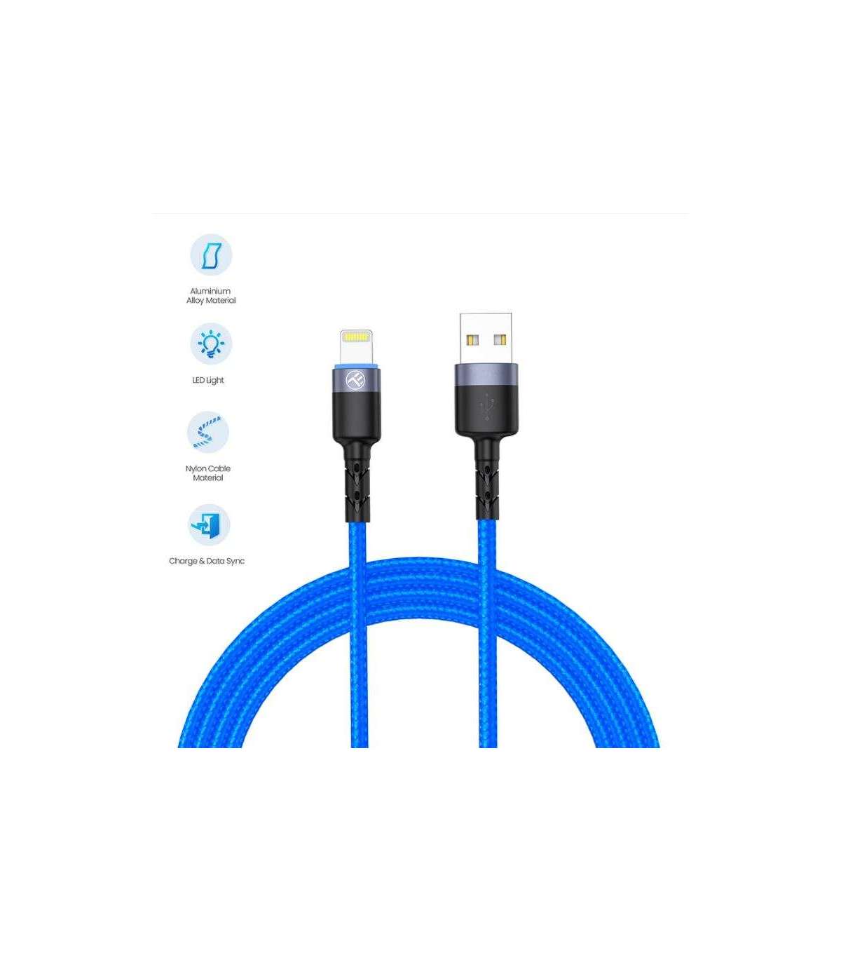 Tellur Data Cable USB to Lightning with LED Light, 3A 1.2m Blue