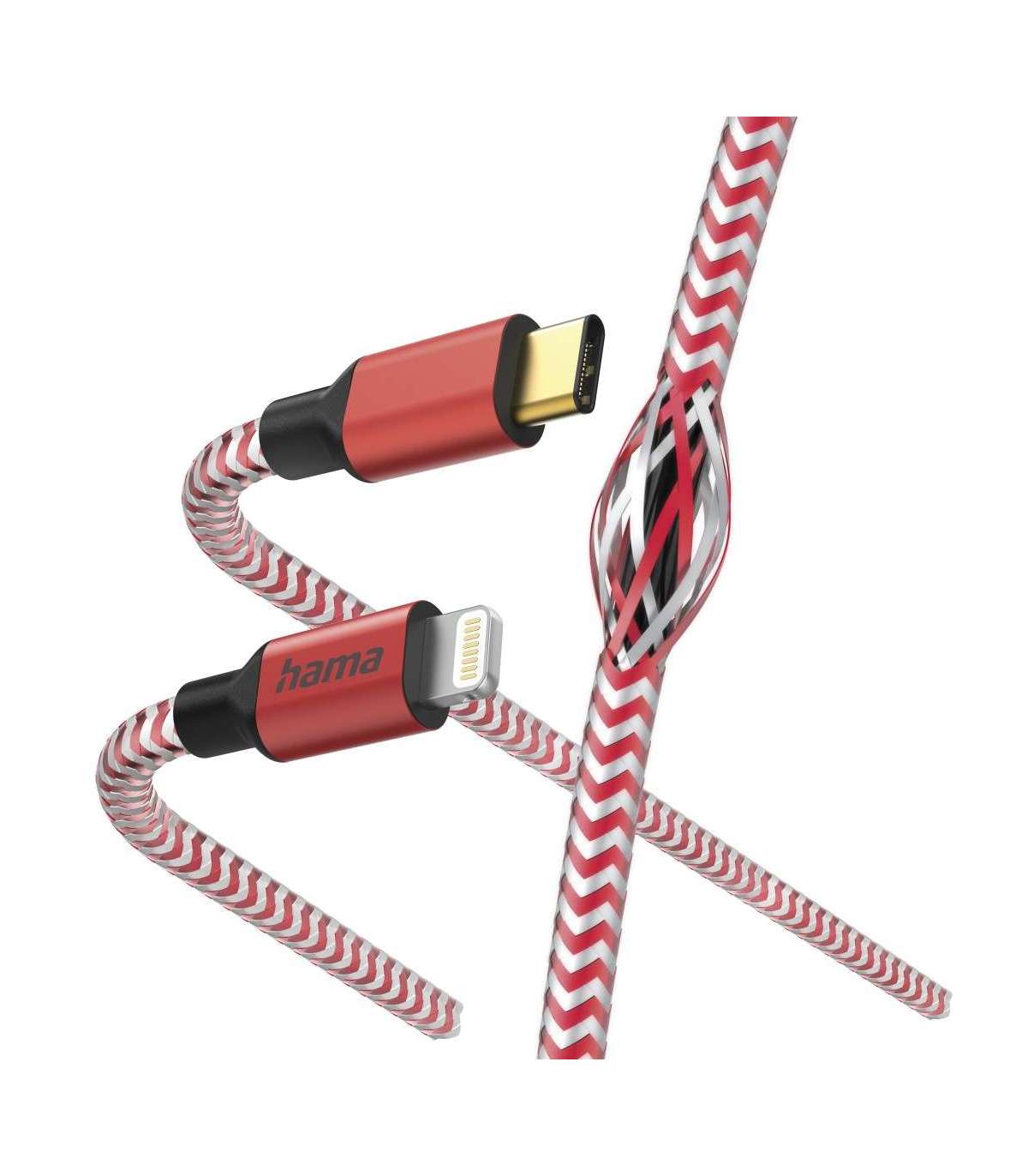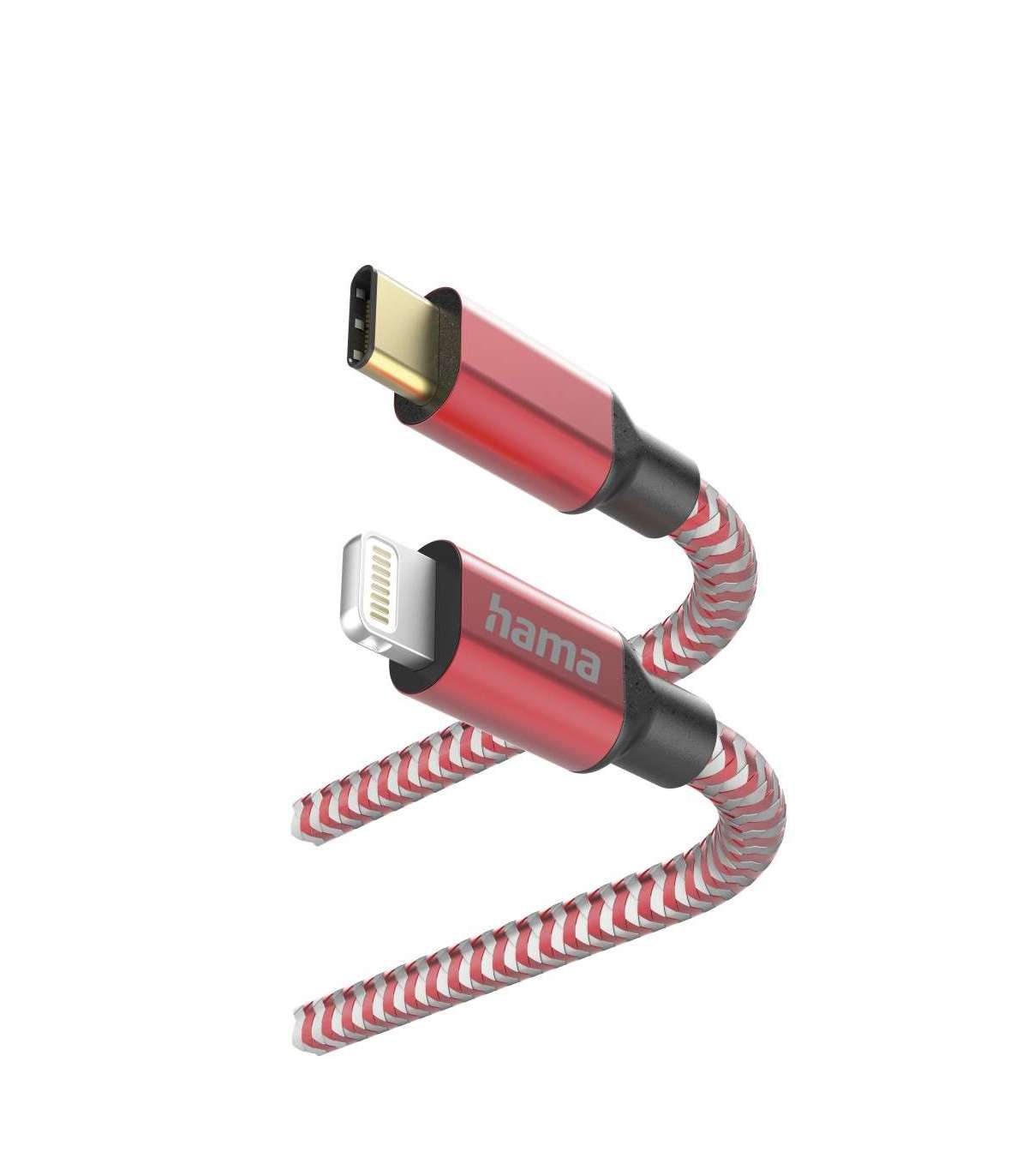 Hama 00201562 Reflective Charging Cable, USB-C - Lightning 1.5m Nylon red