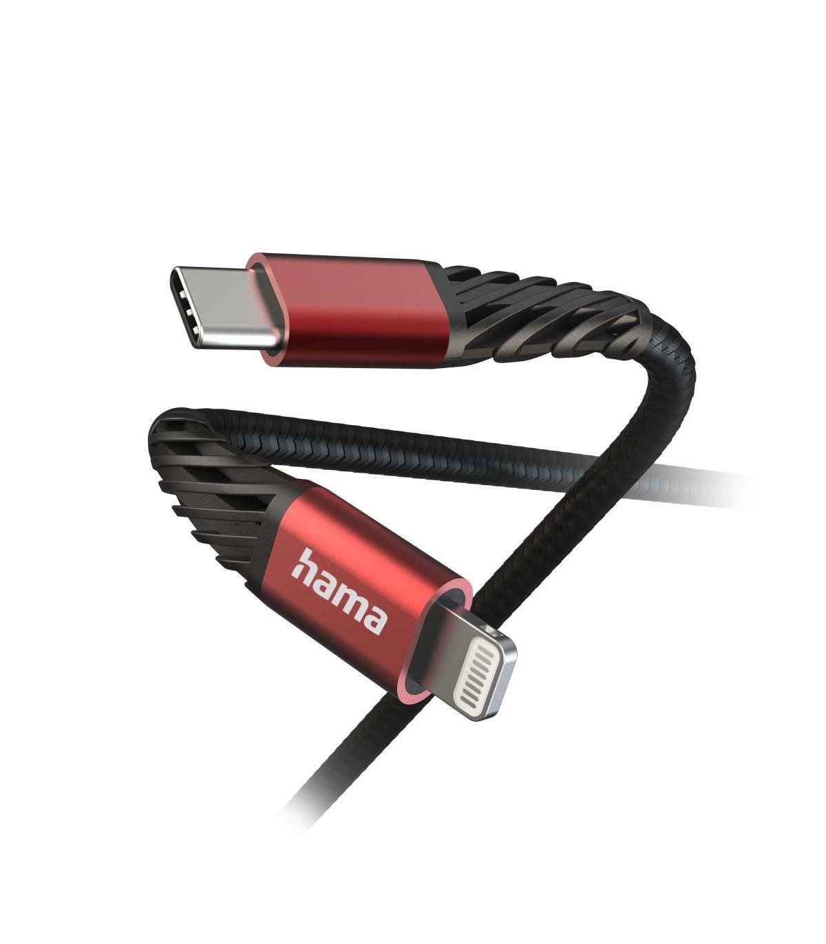 Hama 00201541 Extreme Charging Cable USB-C - Lightning 1.5m Nylon black/red