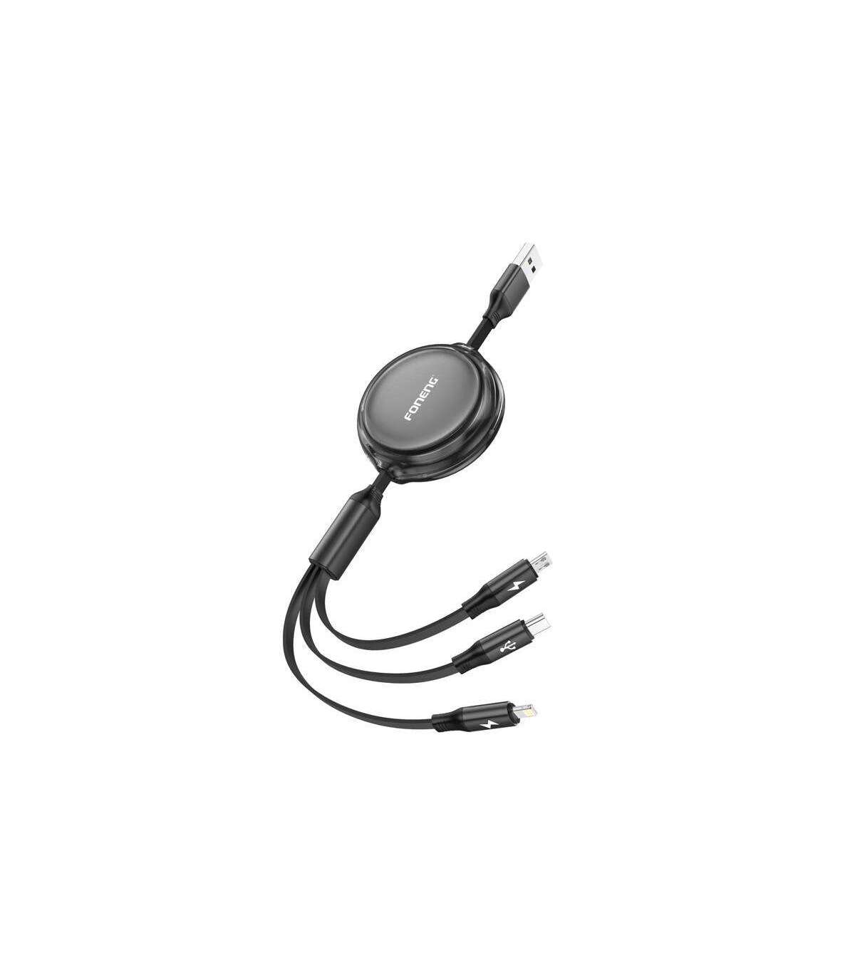 The 3-in-1 Foneng X113 cable combines functionality with modern design. Thanks to its telescopic design with adjustment in several levels, this cable becomes an indispensable accessory for charging Android and Apple devices. With a length of 1.1 meters and a flexible material, it is convenient to use in a variety of conditions, and its unique design makes it a cable that stands out from the rest.