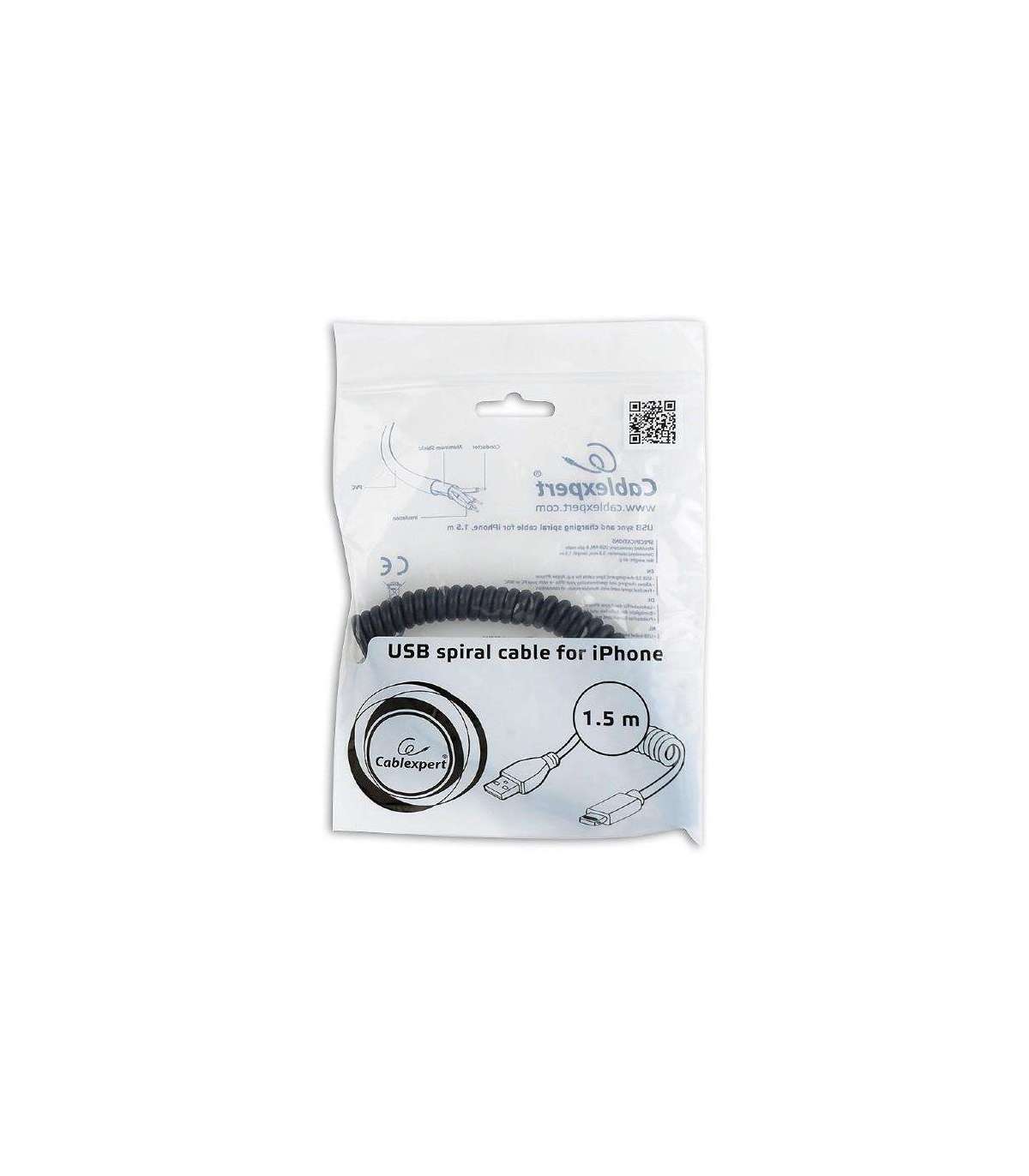 USB sync and charging spiral cable for iPhone, 1.5 m,