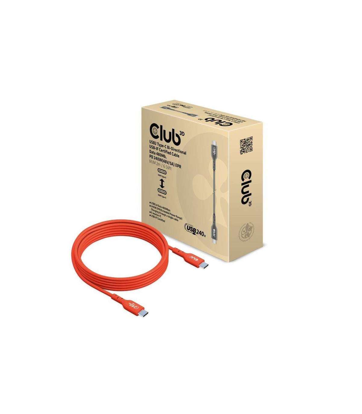 The Club 3D CAC-1573 USB2.0 Type-C Bi-Directional USB-IF Certified Cable, Data 480Mb, PD 240W(48V/5A) EPR, Extended Power Range M/M 2m/6.56ft connects your Notebook, Tablet or Phone with USB Type-C output to your favorite existing Peripherals, Accessories and Chargers. It enables Data and Power over a single cable and both ways. This cable supports USB2.0 data up to 480Mbps and up to 240Watt(48V/5A) output for Downstream charging or powering your Notebook, Tablet or Smartphone.