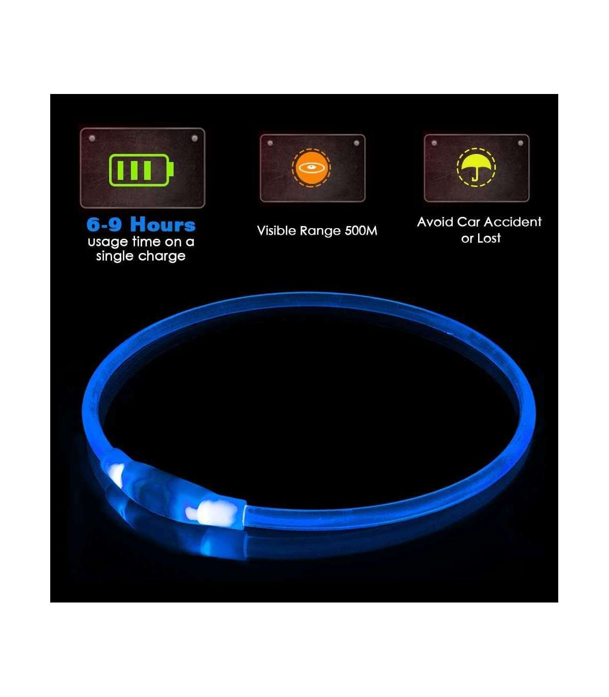 KABB LED Collar for Dogs and Cats Blue