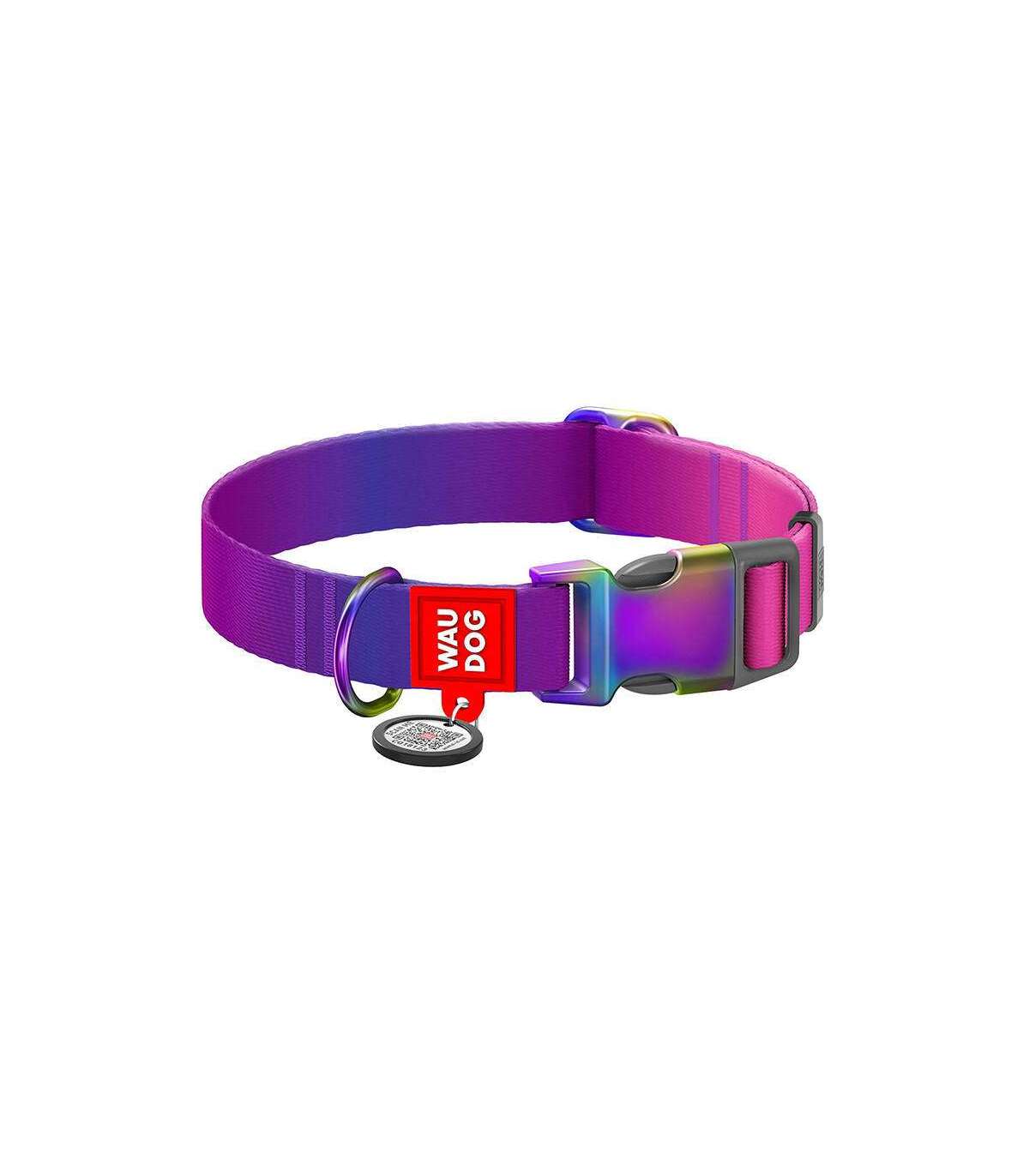 Nylon dog collar with QR code WAUDOG 15 mm wide, 25-35 cm long (purple).