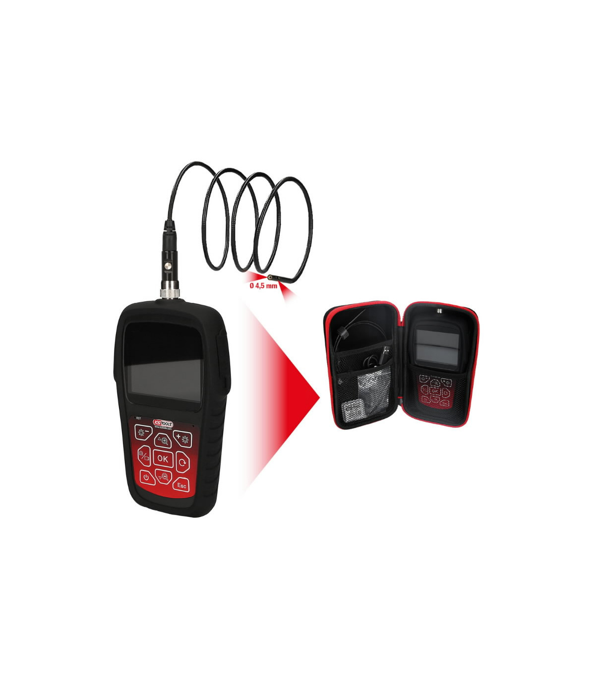 Kontrollkaamera D4,5mm, pikkus 1m. 0° ja 90° HD, KS Tools