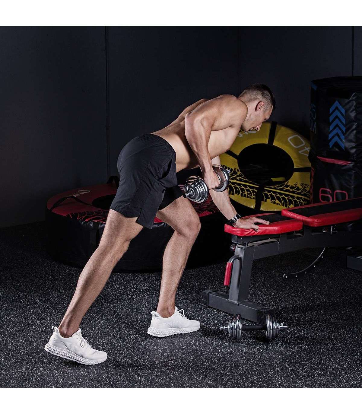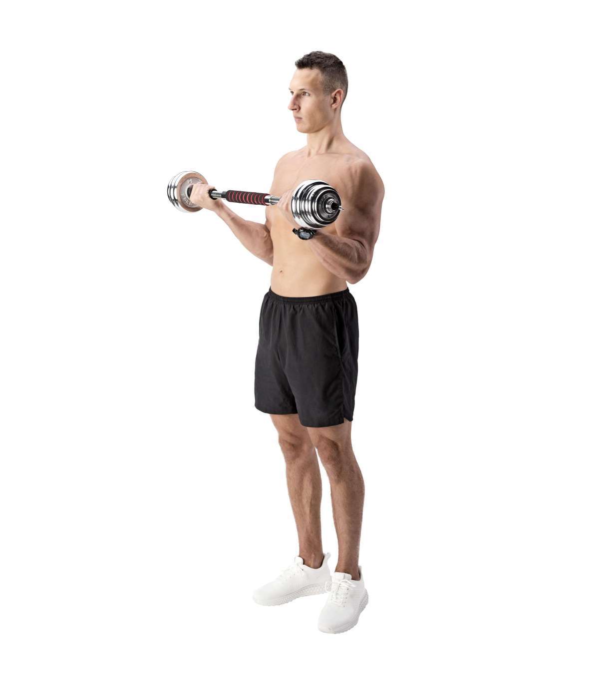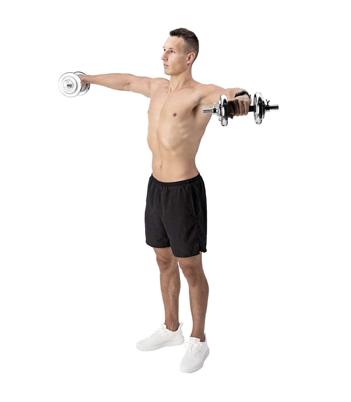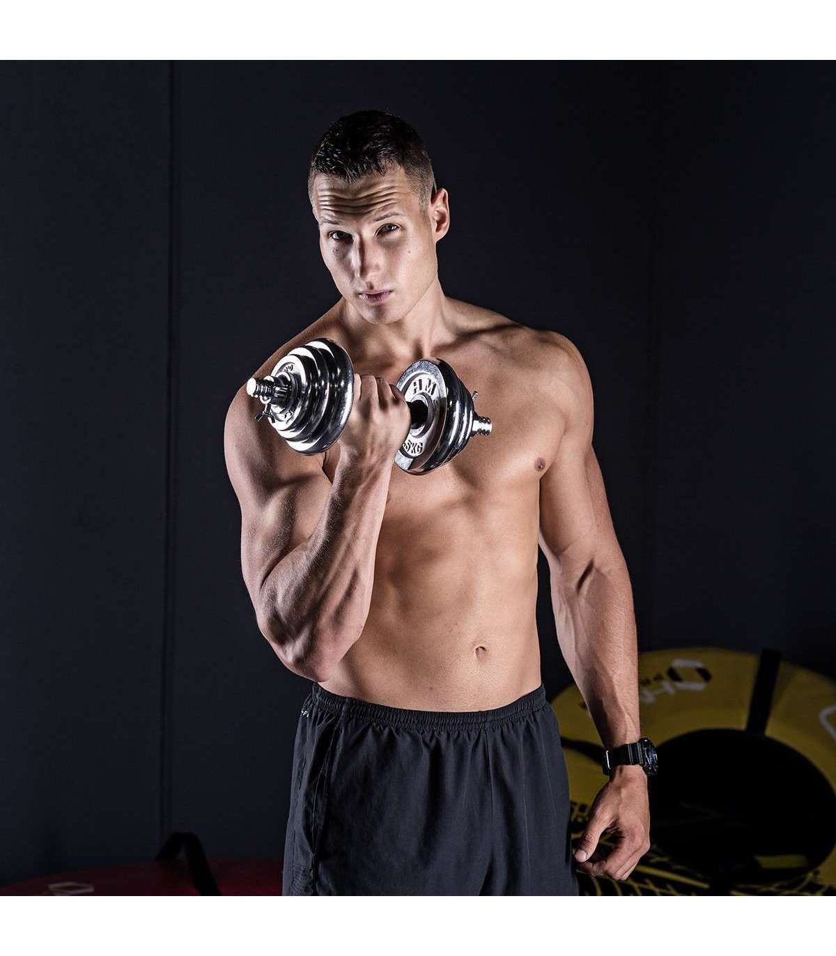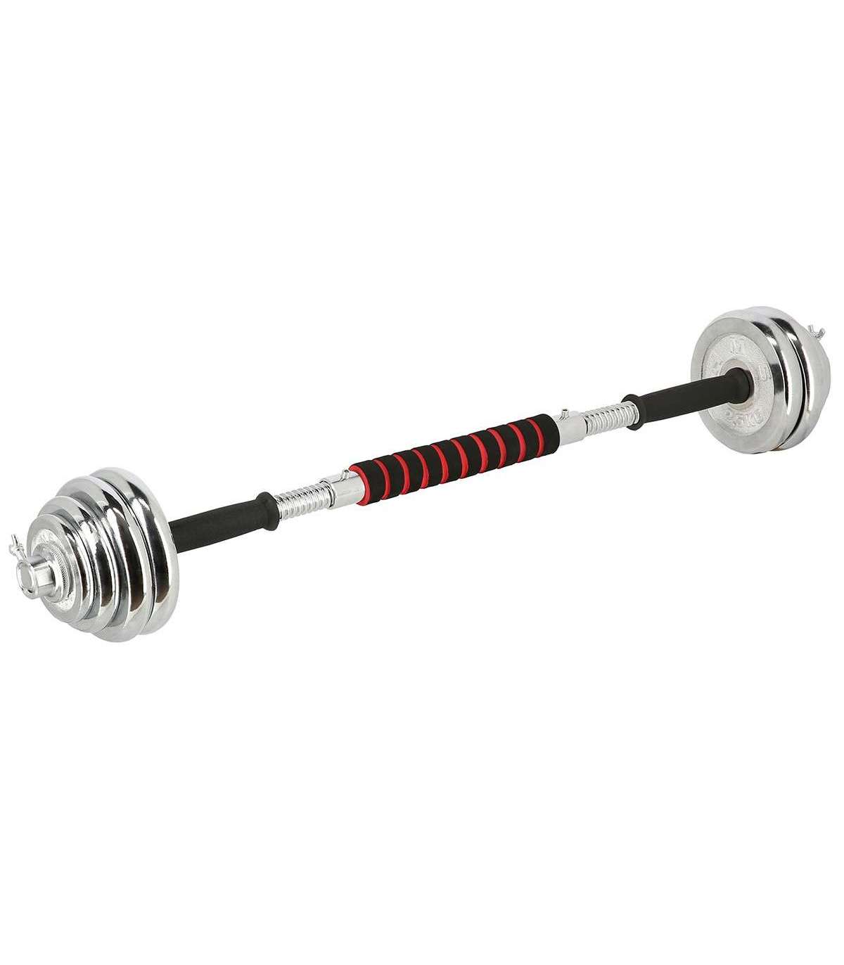 STC21 HMS is a set of chrome barbells in a suitcase, offering also barbell function.Fully equipped gym must offer dumbbells and a barbell. However, in a home gym space saving issue is very important. Therefore, the ideal solution is set of 2 in 1 HMS STC21.HMS STC21 is a set of two dumbbells with replaceable weights. Thanks to a special connection system it can be converted into a barbell. This innovative solution enables a user to save space and it significantly expands the range of workout possibilities compared to a regular set of dumbbells. The process of transformation of dumbbells into a barbell is very simple and does not take much time. Due to the HMS STC21 set it is possible to perform exercises addressed to all muscle groups and in varied configurations.HMS brand focuses primarily on highest quality materials. HMS STC21 is made of chromium-plated steel characterized by a very high strength. This guarantees years of unproblematic use. On the handles of the dumbbells there is a rubber ensuring firm and comfortable grip. The connector supplied to create the barbell is covered with a sponge, which is very useful, for example, while performing squats. Thanks to it there is no discomfort caused by the pressure of the barbell on the back.The unquestionable advantage of the STC21 is that it fits a case coming with the kit. It enables you to easily perform the workout at home and in any other place. In addition, the suitcase ensures the order and it also saves space.The HMS product is suitable for both, advanced users and beginners. Start your training today, STC21 is an ideal choice for a home gym.Specification:Material: chromed steelDimensions of the bar:Length: 35 cmDiameter: 24 mmGrip diameter: 30 mmDimensions of the coupling system:Length: 29.5 cmDiameter: 30 mmGrip diameter: 39 mmWeights:2,5 kg – 14,5 x 2,4 cm1,25 kg – 12,2 x 1,8 cm0,5 kg – 9,3 x 1,3 cmWeight of the bar: 1.1 kgWeight of the coupling system: 0.7 kgWeight of the clamp: 0.2 kgTotal weight of the set: 21 kgThe set includes:Short bar x 2Bars coupling system x 1Weights 2,5 kg x 4Weights 1,25 kg x 4Weights 0,5 kg x 4Clamps x 4Remarks:Not for commercial use24 months warrantyImporter: Abisal Ltd. | Poland | 41-807 Zabrze | Pyskowicka Street 17 | e-mail: abisal@abisal.plAbisal Ltd.. declares that the products sold by the company are safe and meet the requirements contained in the Act on General Product Safety of December 12, 2003. (Journal of Laws of December 31, 2003)