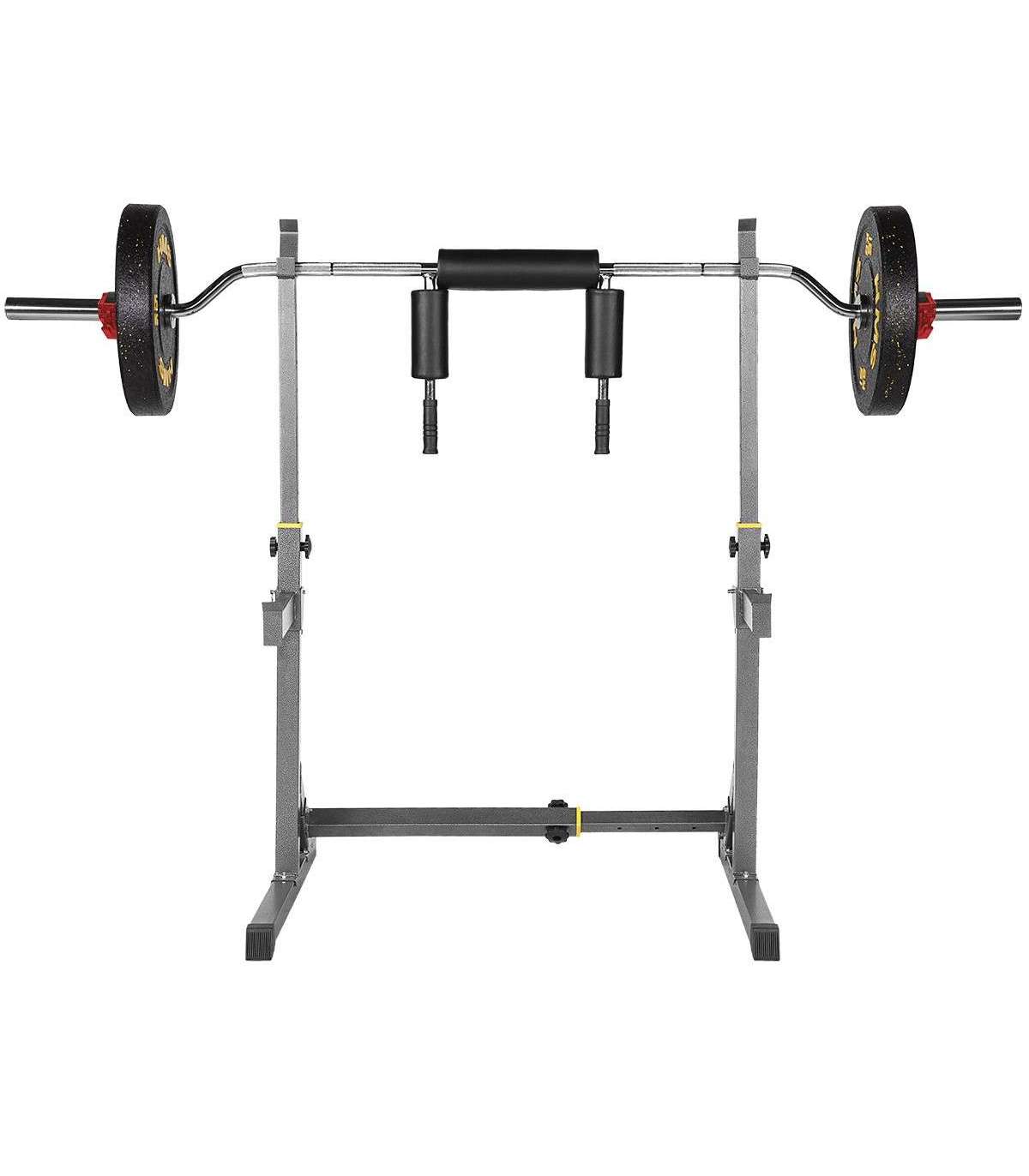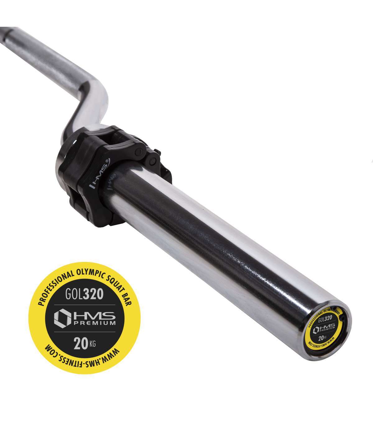 The GOL320 HMS is a barbell designed for squats and lunges.It allows you to maintain proper posture during exercise and perform a fuller, deeper movement. What is its secret? Its shape and additional handles at the front. This shifts the user's centre of gravity slightly forward and downward, making it easier to maintain balance. As a result, it is easier to perform a full range of motion during squats while maintaining proper posture.Special pads reduce pressure on the neck and shoulders, and thanks to the non-slip handles, you don't have to worry about the bar slipping out of your hands during training. The maximum load of 320 kg makes the GOL320 suitable for use by even the most advanced athletes.Specification:Material: chrome-plated hardened steelType: OlympicTotal length (mm): 2300Grip diameter (mm): 30Loadable length (mm): 330Loadable diameter (mm): 50Handle spacing (mm): 295Bearings: 2x needle bearings + 2x bushingsHandle: knurledClamps: 2x jaw clampsMaximum load (kg): 320Product weight (kg): 21Remarks:2-year warranty1-year warranty on foam handlesImporter: Abisal Ltd. | Poland | 41-807 Zabrze | Pyskowicka Street 17 | e-mail: abisal@abisal.plAbisal Ltd.. declares that the products sold by the company are safe and meet the requirements contained in the Act on General Product Safety of December 12, 2003. (Journal of Laws of December 31, 2003)