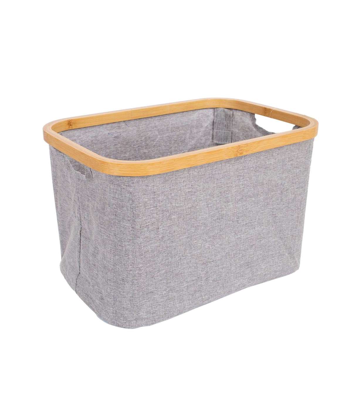 Kokkupandav, kangast säilituskast. Bambusest ülemine raam ja metallist vardad pikenduseks.