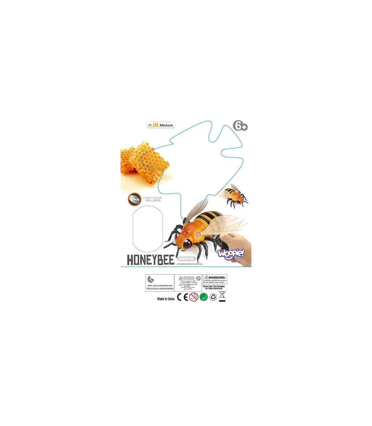 Zdalnie Sterowana Pszczoła na Pilot od marki WOOPIE to zdalnie sterowany robot w formie pszczoły, przeznaczony dla dzieci powyżej 6 roku życia. Robot jest kolorowy, z wyraźnymi czarnymi i żółtymi pasami, imitującymi wygląd prawdziwej pszczoły. Skrzydła są przezroczyste i szczegółowo odwzorowują strukturę skrzydeł owada. Sterowanie odbywa się za pomocą dołączonego pilota z technologią podczerwieni.