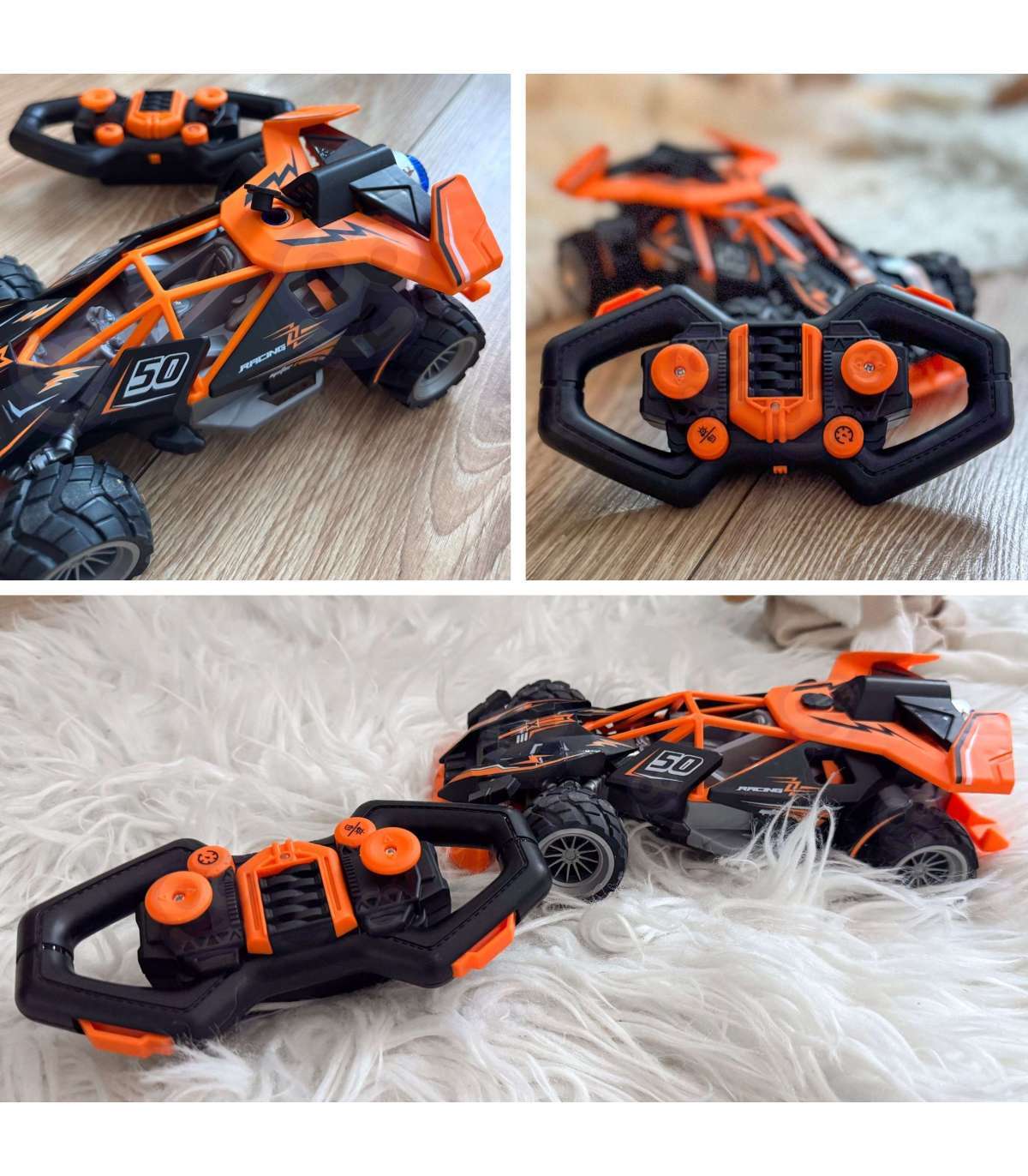 To dynamiczne zdalnie sterowane autko marki Woopie zachęca do szybkich wyścigów i odważnych manewrów, a efektowne LED-y i terenowe opony gwarantują emocje zarówno w domu, jak i na dworze. Dzięki poręcznemu kontrolerowi z dwoma joystickami dziecko szybko opanuje jazdę.