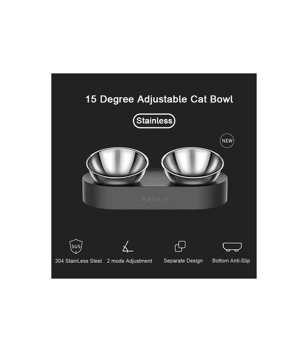 15 degree adjustable cat feeding bowl; Elevated Height improves feeding gesture (up to 7 cm); Slightly inclined surface prevents food spill out