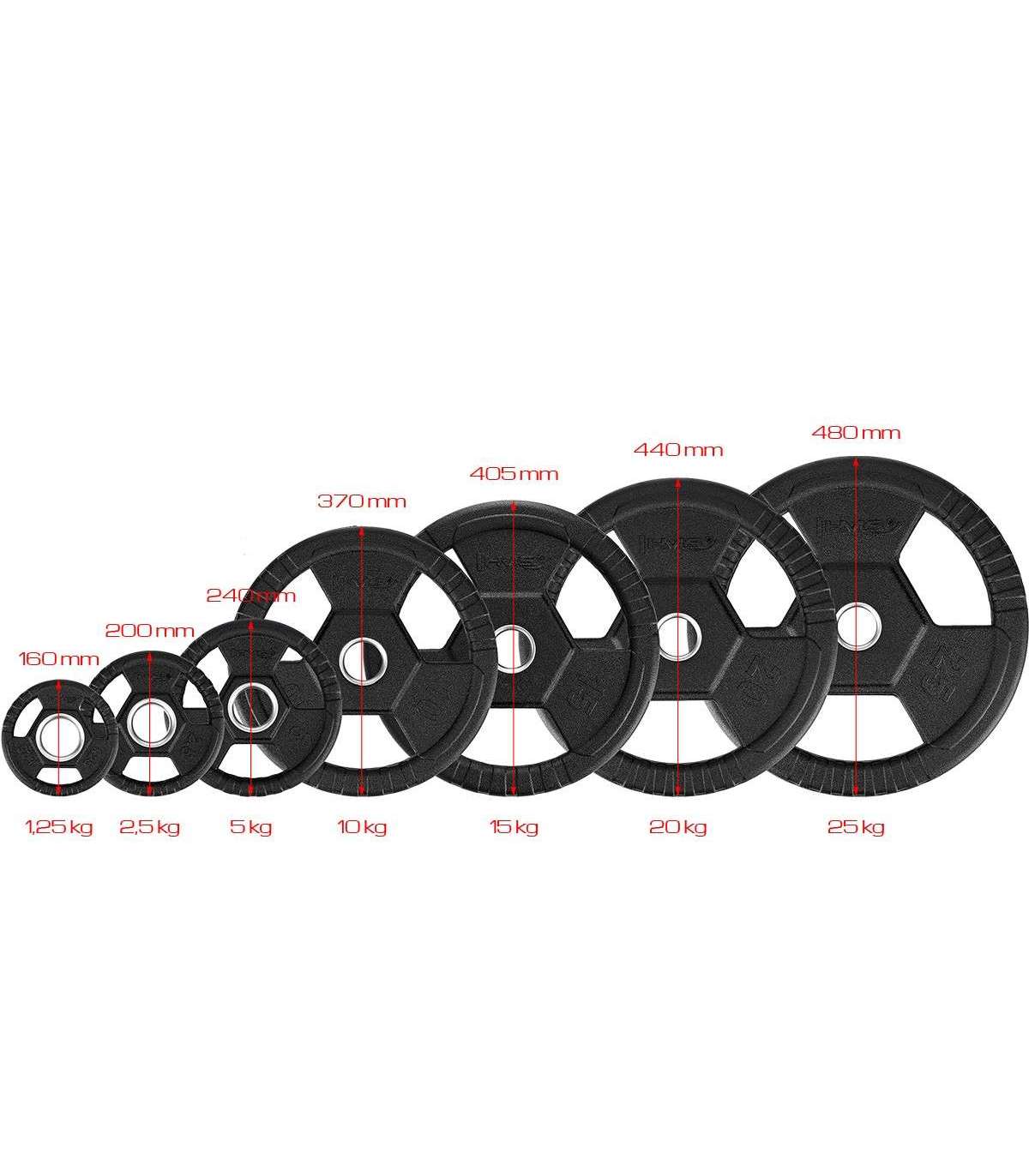 We present TOH load plates under the HMS brand, designed for the Olympic bar.Made of durable steel. The outer layer is a rubber. It is easy to clean and moreover, it absorbs impacts so it protects the floor from damages and it deadens the fall. Perfection of the workmanship enables to appreciate the aesthetic qualities of TOH plates but it also makes their ergonomics stays at the highest possible level. Three handles in each, even the smallest plate, enable to change the load quickly and comfortably. Moreover, they can be easily used as an alternative to dumbbells.Everyone is aware of the importance of the safety during a workout and in particular, at the time of the strength training. To ensure maximum comfort and protection from accidents use equipment and perfect weights made of materials of the highest quality. The HMS brand meets all these requirements providing the TOH plates.TOH HMS plates are comfortable, safe and visually attractive. There's nothing left but to start workout.Specification:Material: Rubber-coated steelHandles for easy handlingWeight: 15 kgInternal diameter: 51 mmOutside diameter: 405 mmThickness: 42 mmRemarks:2-year warranty for home use 1-year warranty for commercial useImporter: Abisal Ltd. | Poland | 41-807 Zabrze | Pyskowicka Street 17 | e-mail: abisal@abisal.plAbisal Ltd.. declares that the products sold by the company are safe and meet the requirements contained in the Act on General Product Safety of December 12, 2003. (Journal of Laws of December 31, 2003)