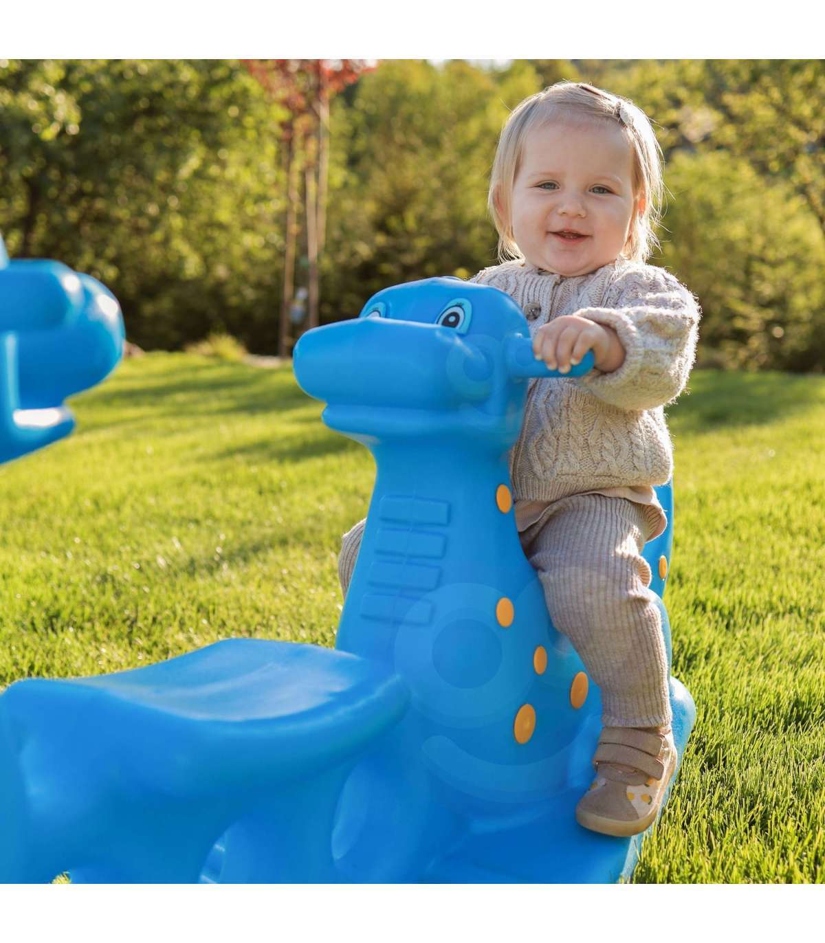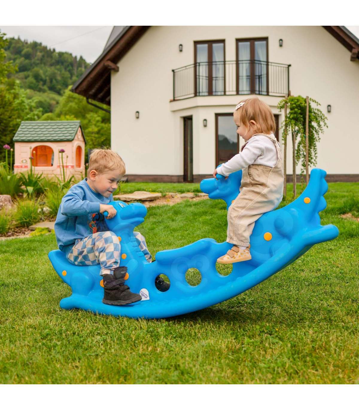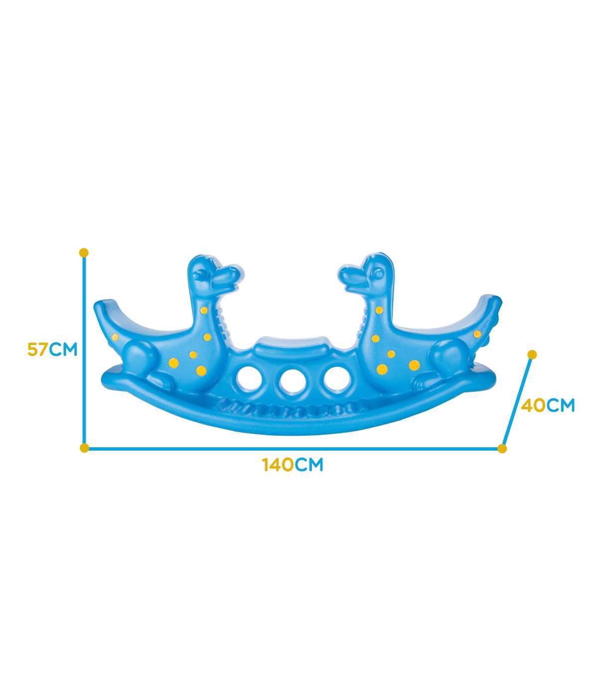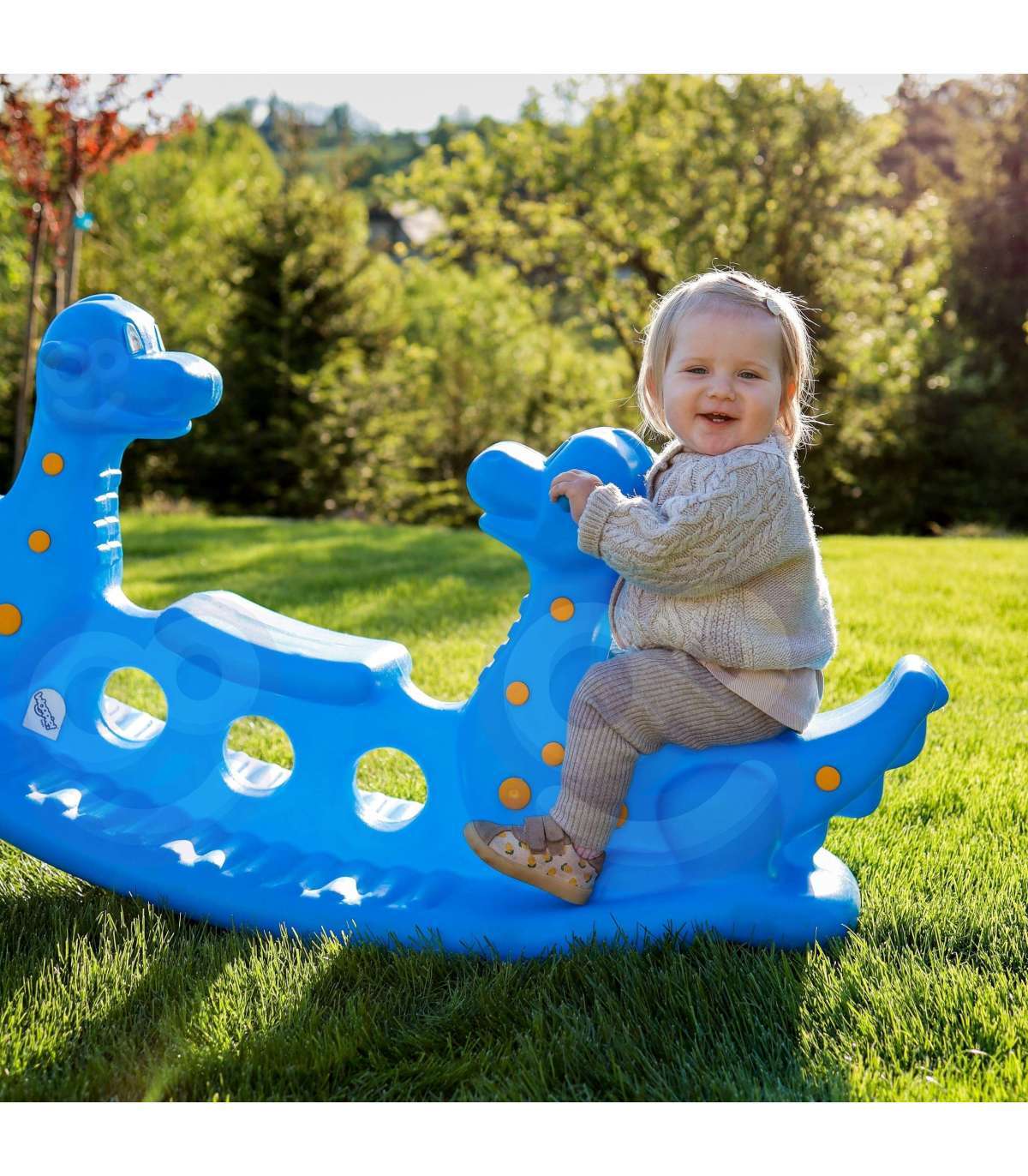 Wieloosobowy bujak Niebieskie Dinozaury marki Woopie zapewnia nie tylko mnóstwo radości, ale i wspiera rozwój fizyczny maluchów. Przeznaczony dla 2–3 dzieci, idealnie sprawdzi się zarówno w domu, jak i w ogrodzie. Jego ergonomiczny kształt, wygodne siedziska oraz uchwyty do trzymania gwarantują bezpieczną i komfortową zabawę przez długi czas. Produkt wykonano z trwałego, odpornego na warunki atmosferyczne tworzywa, które doskonale znosi intensywną eksploatację. To świetna alternatywa dla klasycznych huśtawek i bujaków – dziecko może się bawić samodzielnie lub w parze, ucząc się przy tym współpracy i równowagi. Lekka konstrukcja umożliwia łatwe przenoszenie produktu w dowolne miejsce. Niebieski kolor z kolorowymi kropeczkami w połączeniu z siedziskami w kształcie dinozaurów przyciągają uwagę dzieci i zachęcają do aktywnej zabawy! Bujanie się na tej huśtawce to nie tylko świetna rozrywka, ale i forma naturalnej gimnastyki, która pozytywnie wpływa na rozwój motoryki dużej, równowagi oraz koordynacji ruchowej.