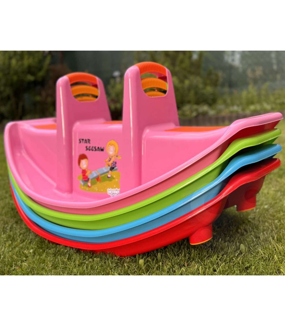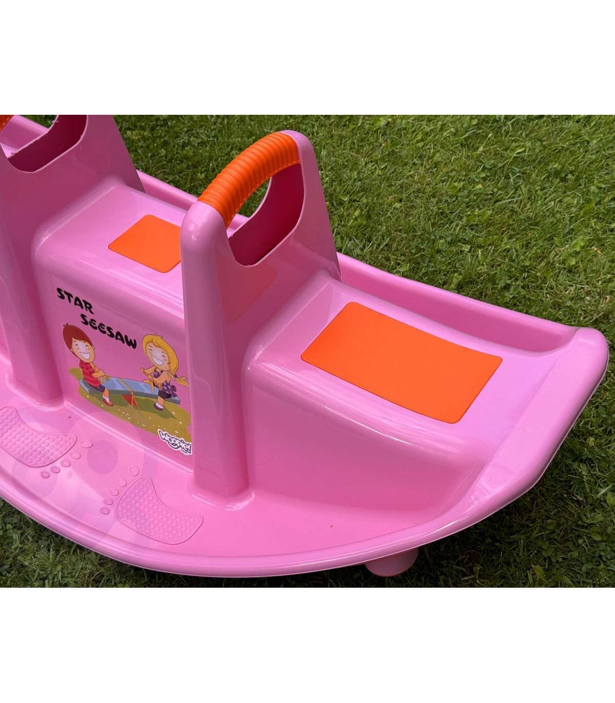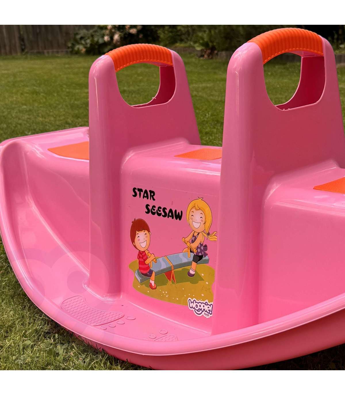 Dwumiejscowy różowy bujak marki Woopie zapewnia nie tylko mnóstwo radości, ale i wspiera rozwój fizyczny maluchów. Przeznaczony dla 1–2 dzieci, idealnie sprawdzi się zarówno w domu, jak i w ogrodzie. Jego ergonomiczny kształt, wygodne siedziska oraz uchwyty do trzymania gwarantują bezpieczną i komfortową zabawę przez długi czas. Produkt wykonano z trwałego, odpornego na warunki atmosferyczne tworzywa, które doskonale znosi intensywną eksploatację. To świetna alternatywa dla klasycznych huśtawek i bujaków – dziecko może się bawić samodzielnie lub w parze, ucząc się przy tym współpracy i równowagi. Lekka konstrukcja umożliwia łatwe przenoszenie produktu w dowolne miejsce. Intensywny różowy kolor w połączeniu z pomarańczowymi akcentami oraz wesołym nadrukiem na froncie przyciągają uwagę dzieci i zachęcają do aktywnej zabawy! Bujanie się na tej huśtawce to nie tylko świetna rozrywka, ale i forma naturalnej gimnastyki, która pozytywnie wpływa na rozwój motoryki dużej, równowagi oraz koordynacji ruchowej.