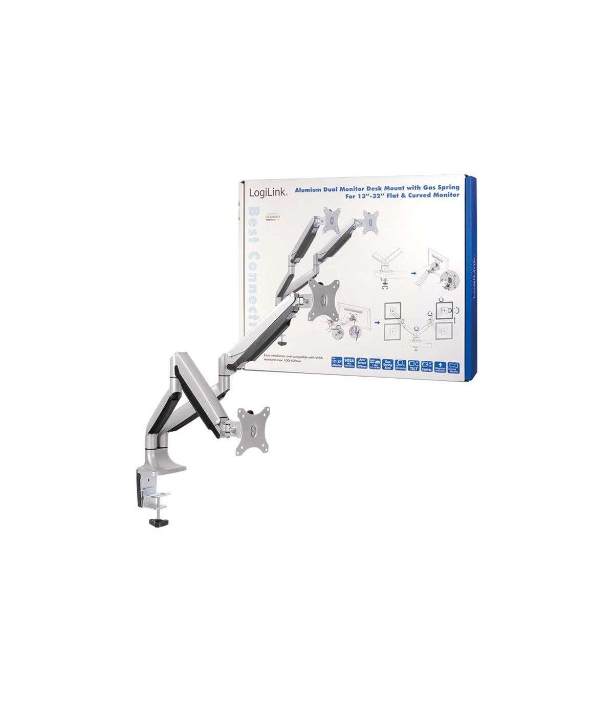 Logilink BP0043 Dual Monitor Desk mount, 13"-32",gas spring, aluminum | Logilink