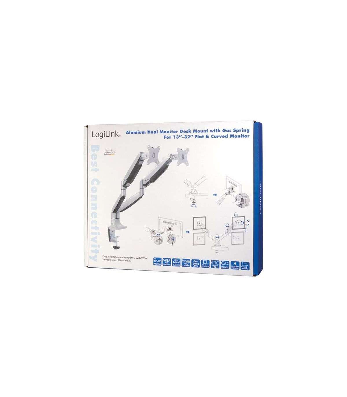 Logilink BP0043 Dual Monitor Desk mount, 13"-32",gas spring, aluminum Logilink