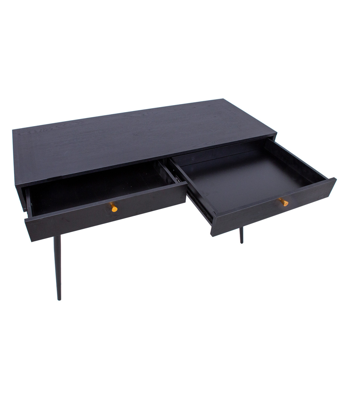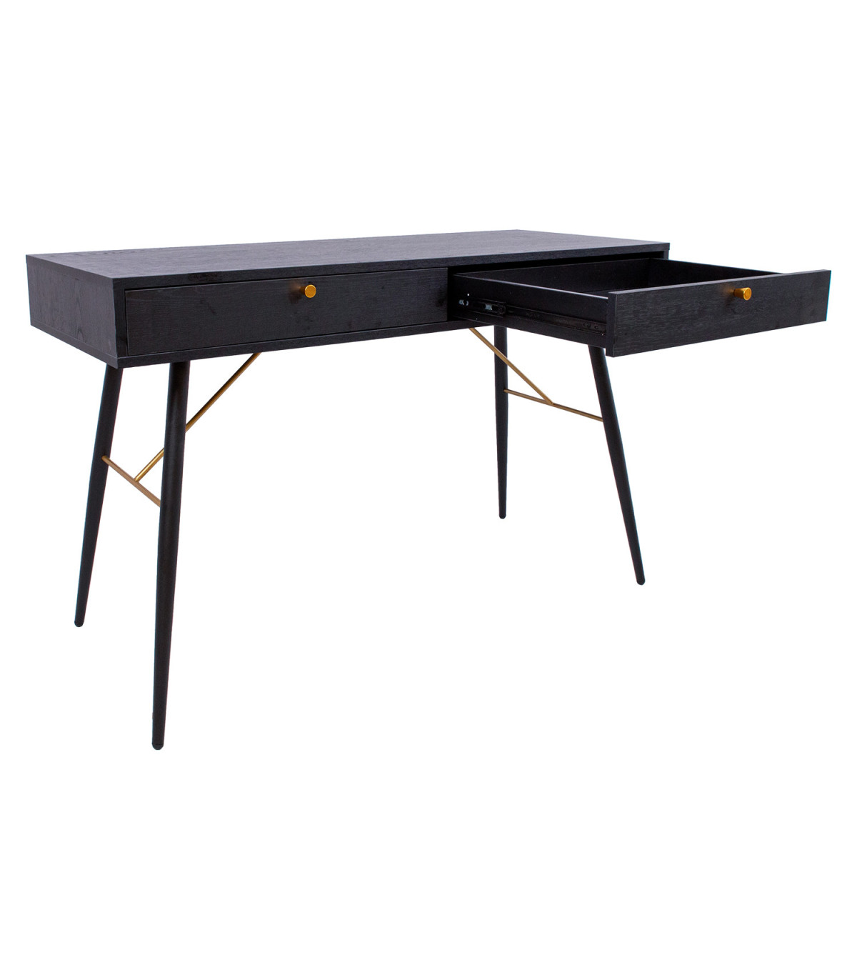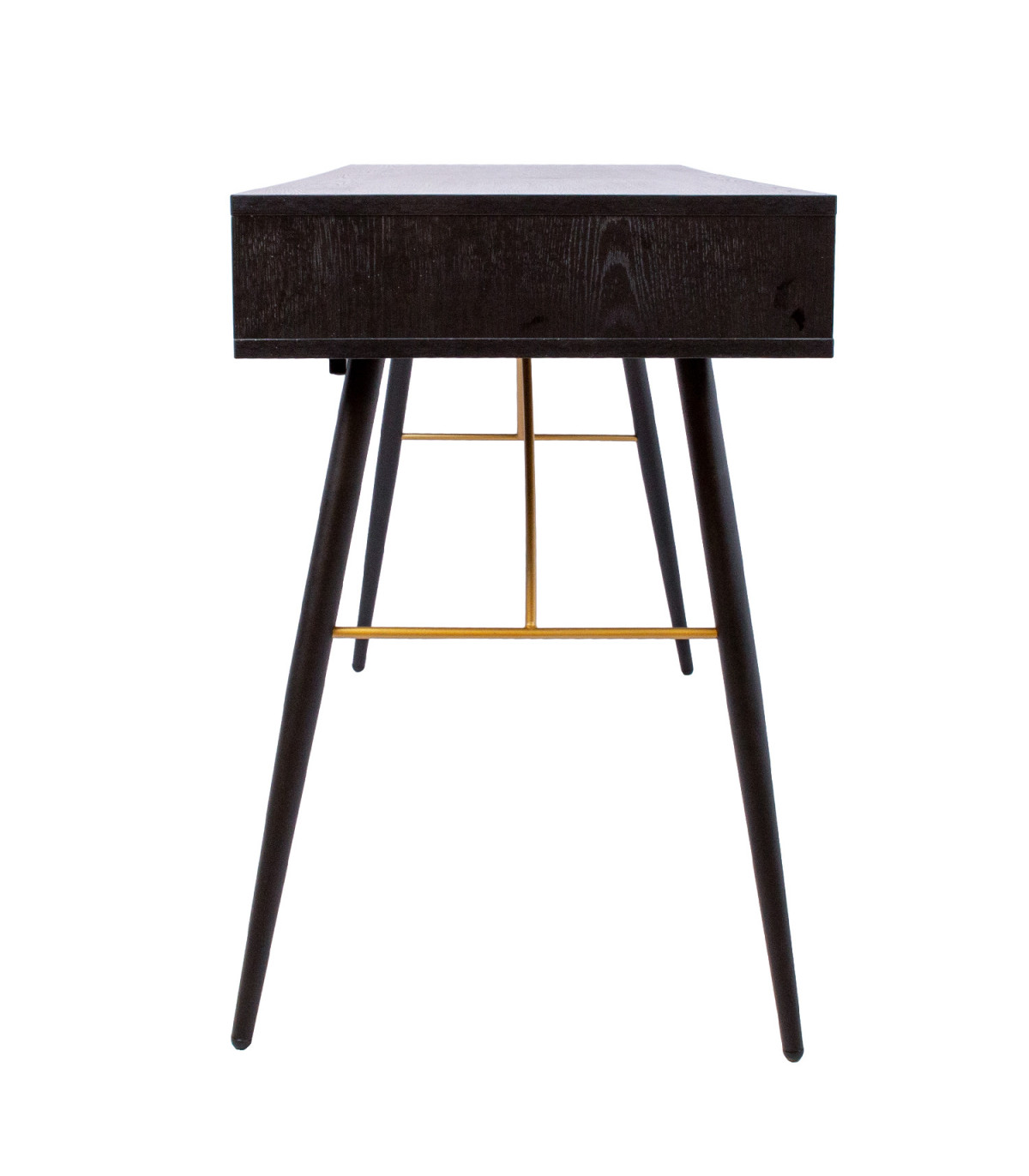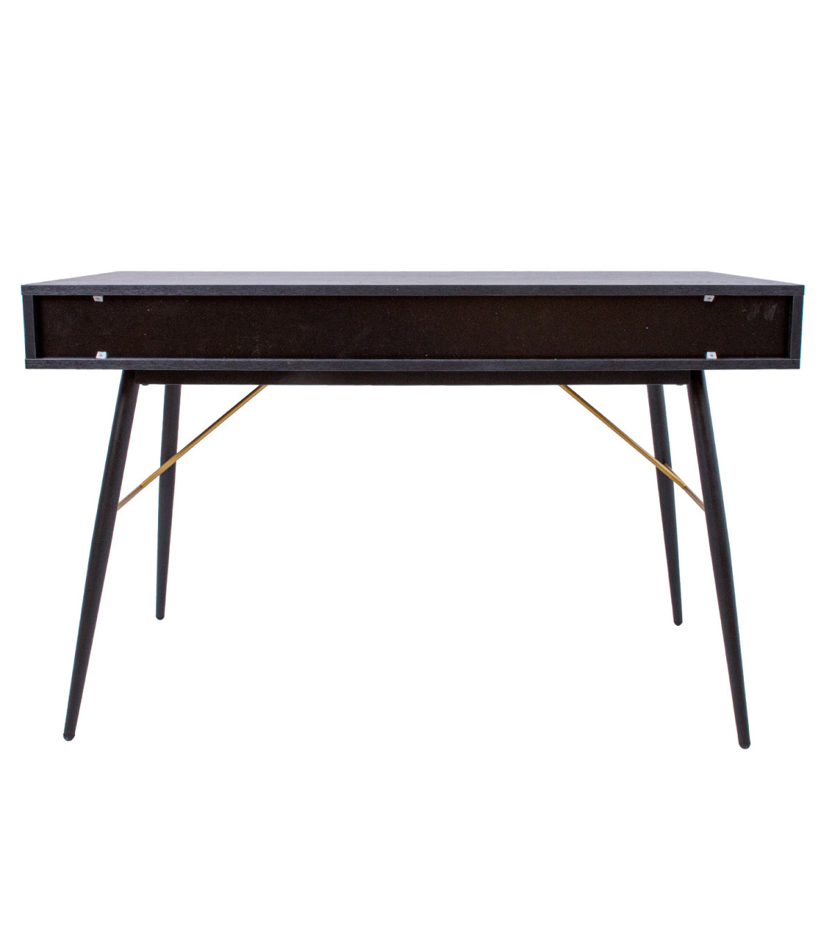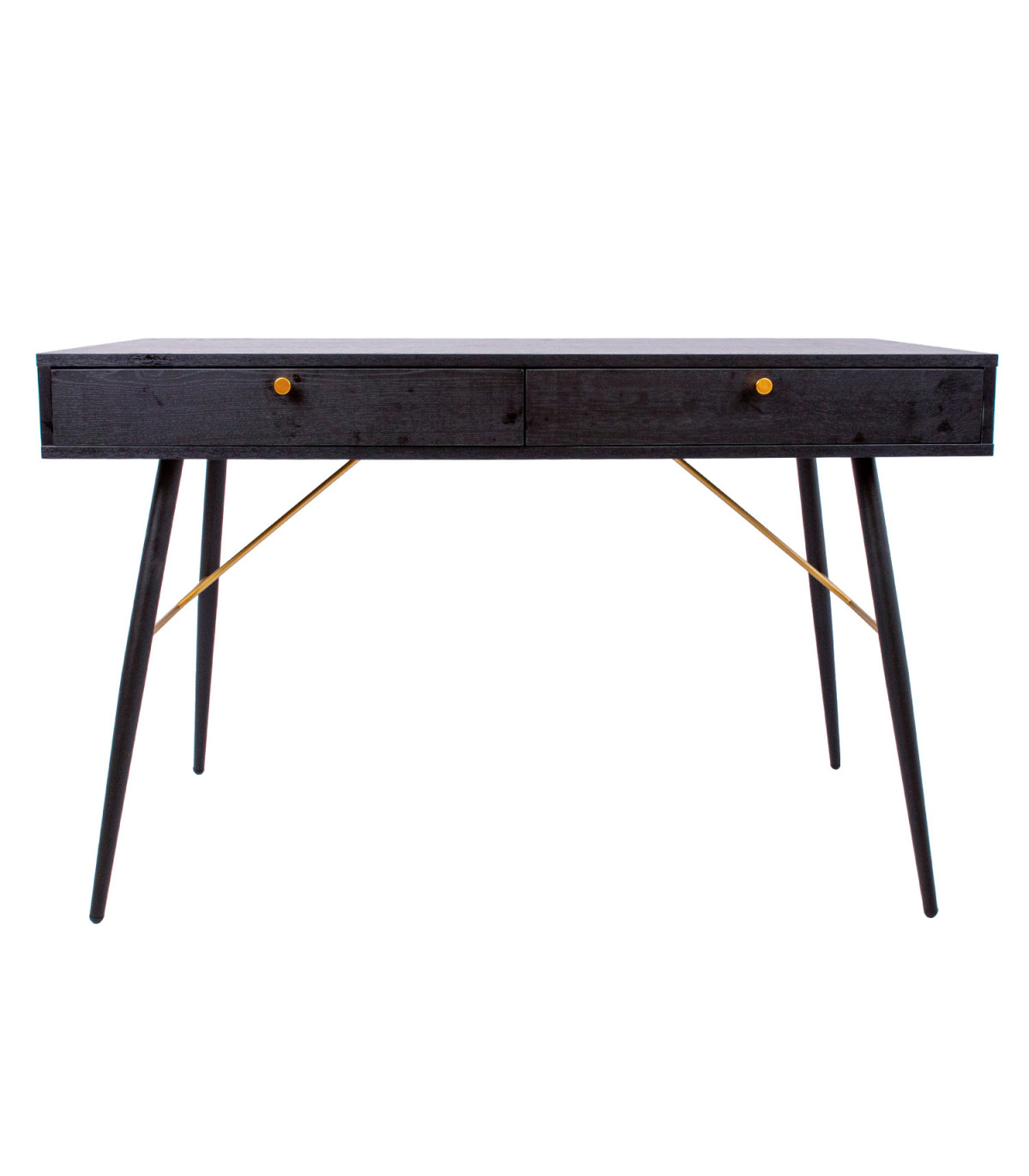 Kirjutuslaud LUXEMBOURG 120x48xH75cm, must melamiin. Laud on valmistatud puidudekooriga melamiinkattega mööbliplaadist. Lauajalgu seovad vasevärvi metallist detailid, mis annavad lauale stiilse välimuse ja samas tagavad aluskonstruktsiooni tugevuse. Lauaplaadi all on kaks sahtlit. Sahtlisiinid on vaikselt sulguvad. Sahtlitel on vasevärvi alumiiniumust nupud. Lauajalgade kõrgus on 62cm.