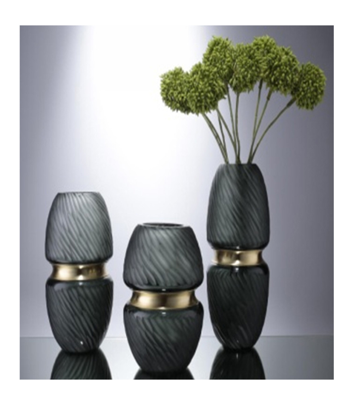 Vaas LUXO, D12xH28cm roheline/kuldne rõngas