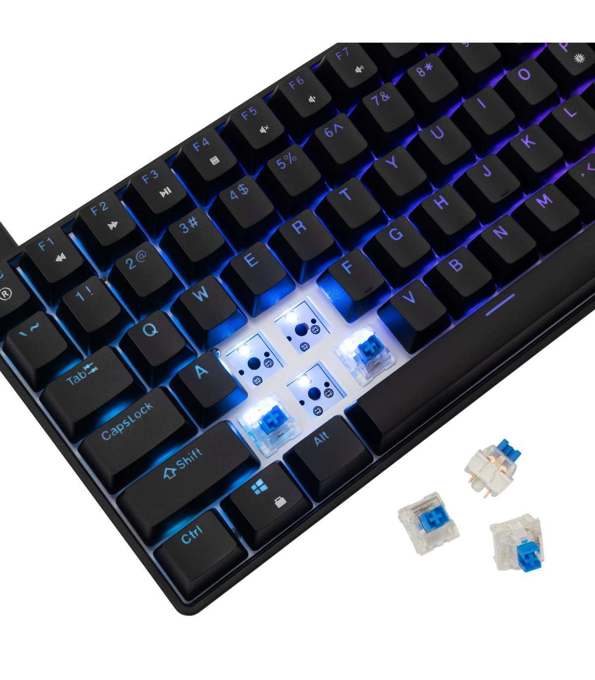 White Shark HAMACHI klaviatuur ühendab kompaktse disaini võimsate funktsioonidega, sealhulgas kuumvahetusega mehaanilised sinised lülitid, mis on ette nähtud üle 50 miljoni klahvivajutuse jaoks.