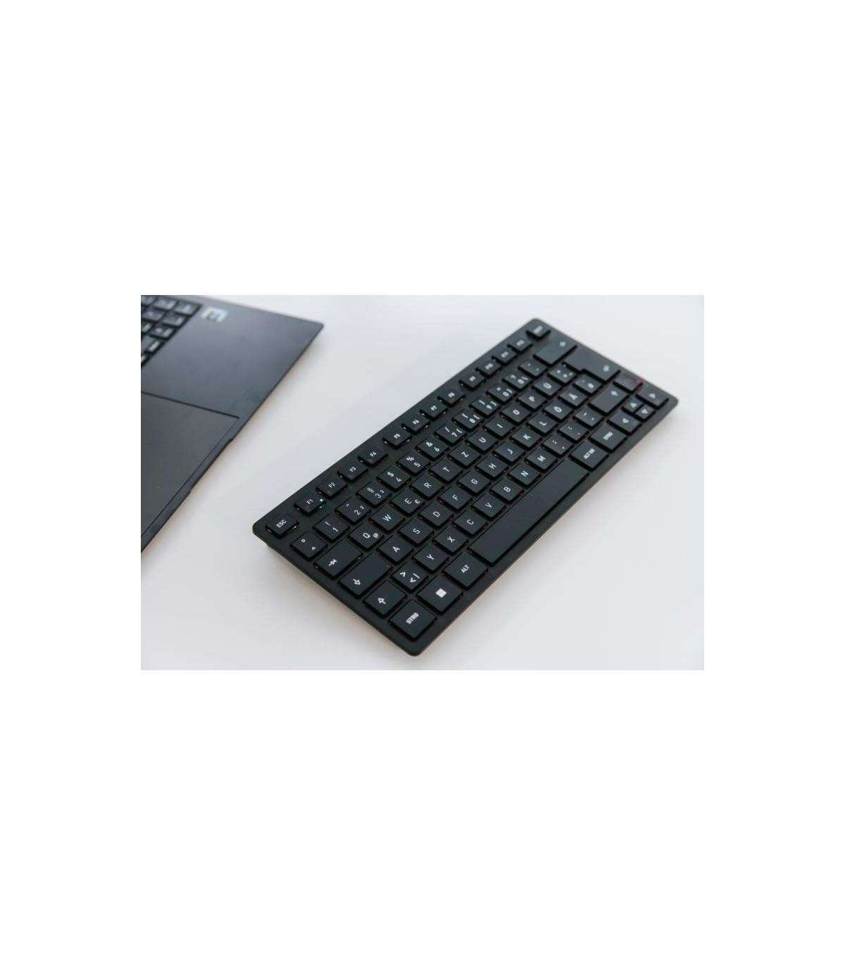 Die KW 9200 MINI mag klein sein - aber sie ist dennoch eine vollwertige Premium-Tastatur. Natürlich ist sie ideal für den mobilen Einsatz geeignet, aber auch auf dem Schreibtisch spielt sie ihre Stärken voll aus. Dank ihrer kompakten Abmessungen nimmt sie nur wenig Platz ein und sorgt so für Ordnung auf Ihrem Schreibtisch. Das hat auch ergonomische Vorteile: Im Vergleich zu Tastaturen in Standardgröße liegt Ihr Mausarm näher an der Tastatur. Das führt automatisch zu einer besseren Schulterhaltung und kann Verspannungen entgegenwirken. Die KW 9200 MINI ist ein perfektes Beispiel dafür, wie sich Design und Funktion perfekt ergänzen können. Die kabellose Tastatur sorgt für mehr Ordnung auf dem Schreibtisch und entspricht zu 100% dem Zeitgeist. Die Kombination aus ultraflachen Abmessungen und Tasten mit dezentem roten Hintergrund wirkt elegant und modern zugleich.