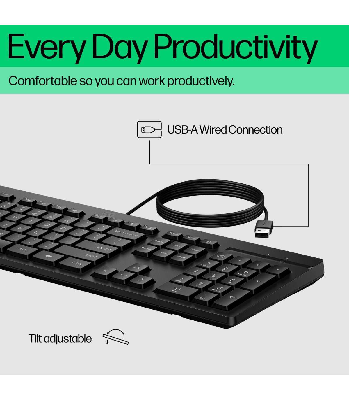 HP 125 G2 USB Wired Keyboard, Sanitizable, Copilot Key - Black - ESTONIAN