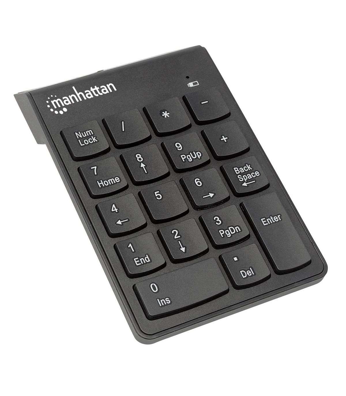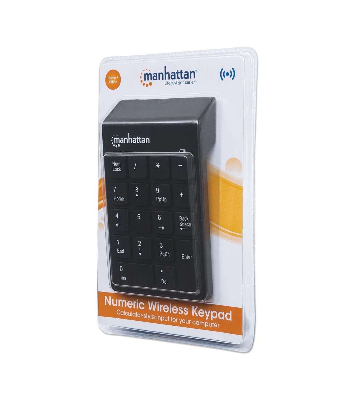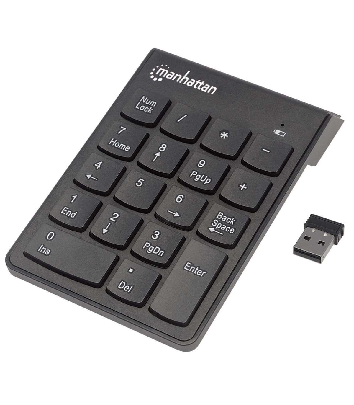 Manhattan Numeric Keypad, Wireless (2.4GHz), USB-A Micro Receiver, 18 Full Size Keys, Black, Membrane Key Switches, Auto