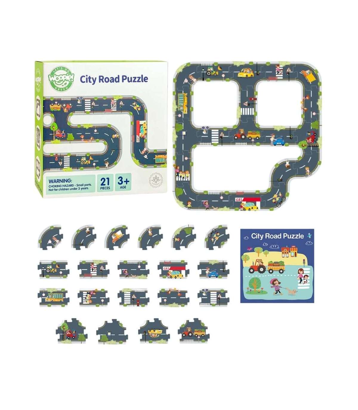 Puslede kokkupanek annab lastele võimaluse vabaks mänguks, mis samal ajal treenib motoorikat, käe–silma koordinatsiooni ja suutlikkust keskenduda. Lisaks kujutavad pusled liiklusmärke, tänavaid ja linnaliikluse elemente — laps õpib tundma ümbruskonda, omandades ohutus ja liikluse korralduse reegleid.