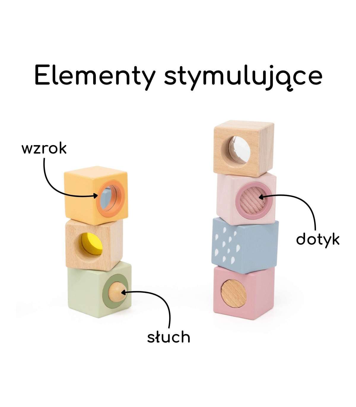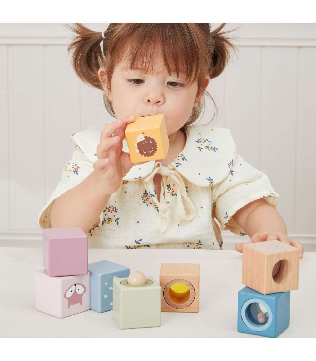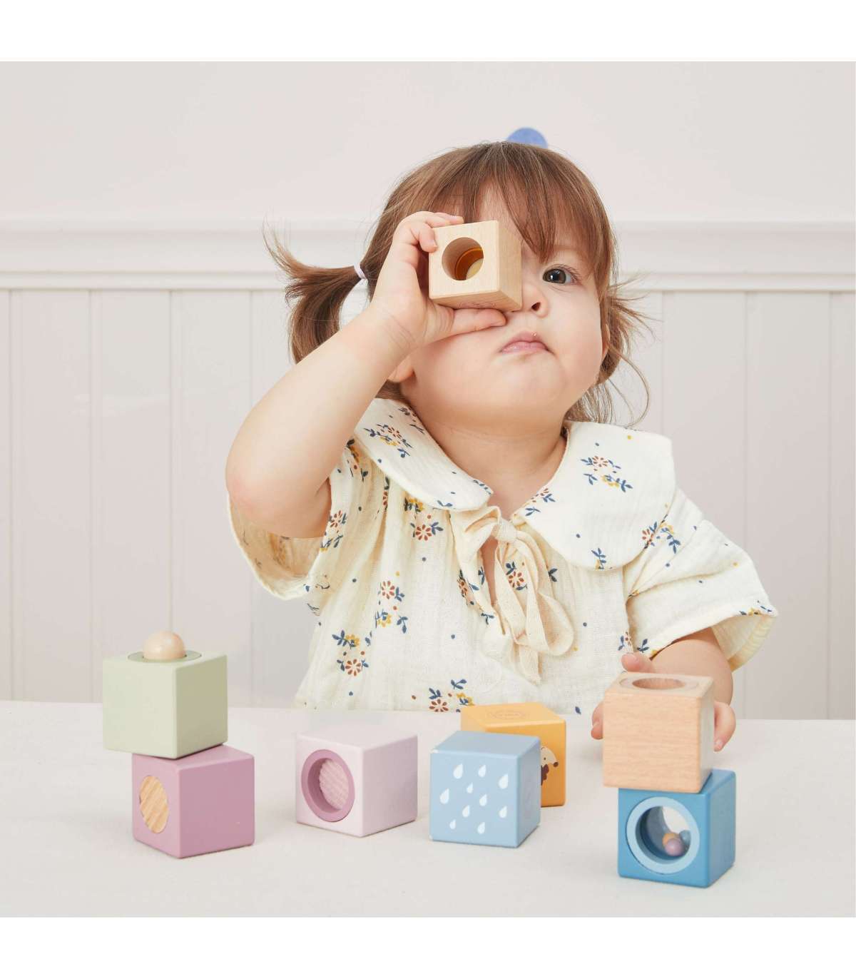 Avasta lõputu mängu ja avastamise maailm nende 8-osaliste sensoriliste puidust klotsidega. Nad on loodud stimuleerima puute-, nägemis- ja kuulmismeelt; igal klotsil on ainulaadne tekstuur, peegel, kelluke või kahin. Klotsid on väikelaste kätele ideaalsed, ohutud, vastupidavad ja kaunilt kujundatud ning toetavad sinu lapse sensoorset arengut, peenmotoorikat ja kujutlusvõimet.