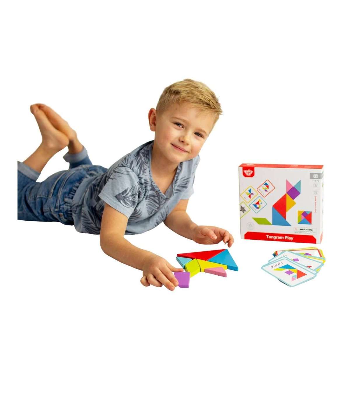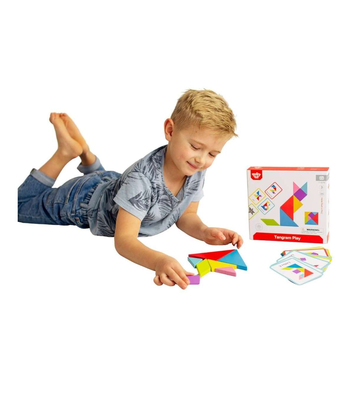 Puzzle tangram od marki Tooky Toy, to idealny produkt dla małego wielbiciela gier i zabaw. Taka zabawka świetnie wpływa na rozwój umiejętności logicznego myślenia i kreatywności. Dziecko ćwiczy swoją koncentrację, a przy okazji może uczyć się kolorów i kształtów.