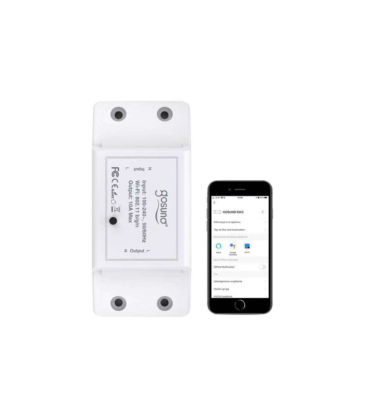 Gosund SW3 relay can be used both at home and in the office. It allows you to control any device with a power supply of 100~240V and a current of up to 10A, making it possible to integrate about 11,000 devices.