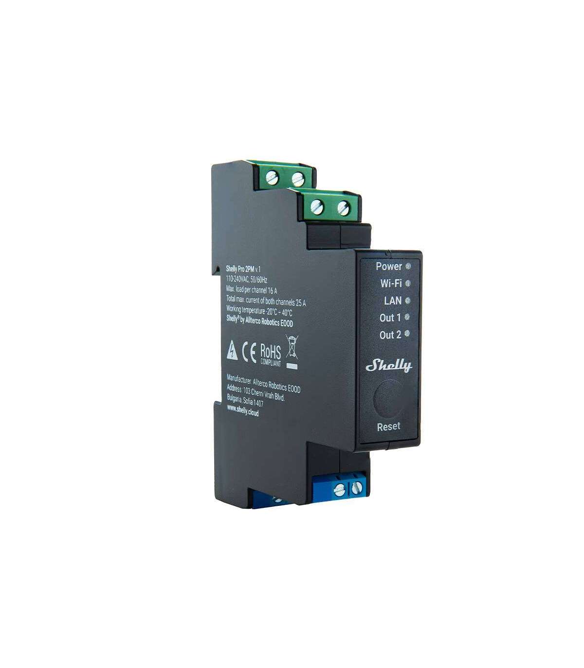 Shelly Pro 2PM is an intelligent DIN rail relay with two channels, allowing control of devices with a maximum load of 16 A per channel and a total of 25 A. It comes with a built-in power meter, enabling users to precisely monitor the energy consumption of automated lighting or other equipment. With support for WiFi, LAN, and Bluetooth, it is well-suited for both home and building automation. It also integrates with popular voice assistants like Google Assistant, Samsung SmartThings, and Amazon Alexa, making home control even more convenient. Moreover, scripting features enable the creation of custom automation scenes based on various events, such as weather forecasts.