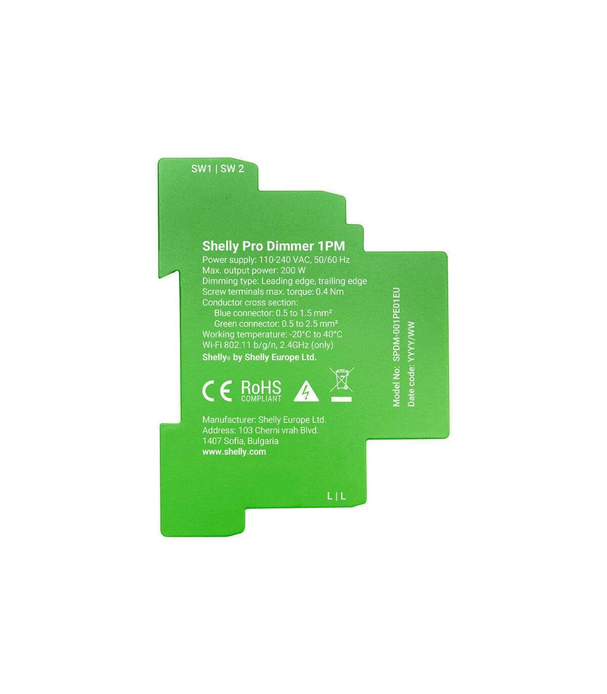 The Shelly Pro Dimmer 1 is a state-of-the-art, single-channel DIN-rail-mounted dimmer designed for smart lighting management in the home or office. The device can operate autonomously on a local Wi-Fi network or be controlled by cloud-based home automation services. In addition, an integrated web interface allows remote access, control and monitoring of the dimmer's status from anywhere in the world where an internet connection is available. No additional hub is required for the product to function properly - it can be controlled locally or remotely, via Shelly Smart Control or a third-party system.