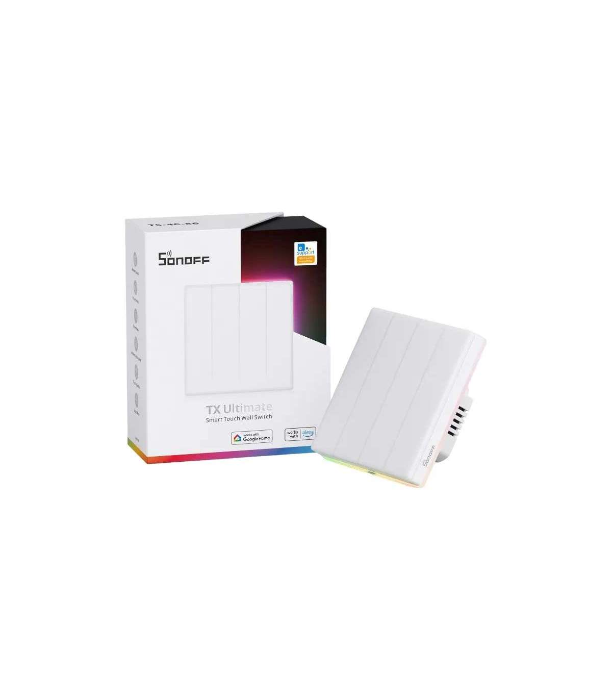 Create a smart home with Sonoff. The TX T5 4C is a 4-channel wall switch that allows you to control your lighting conveniently. You can also control it remotely using voice commands or the eWeLink app. What's more, the product offers a timer function and colorful LED backlighting that you can customize. You can also personalize the look of the switch using the color panels (not included).