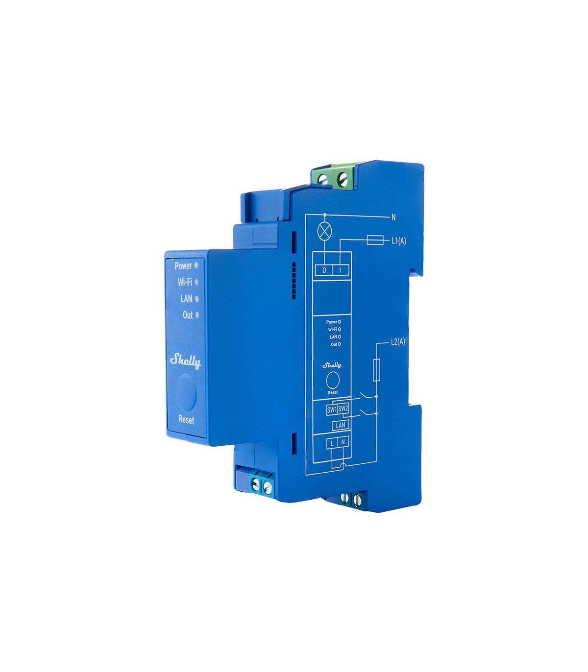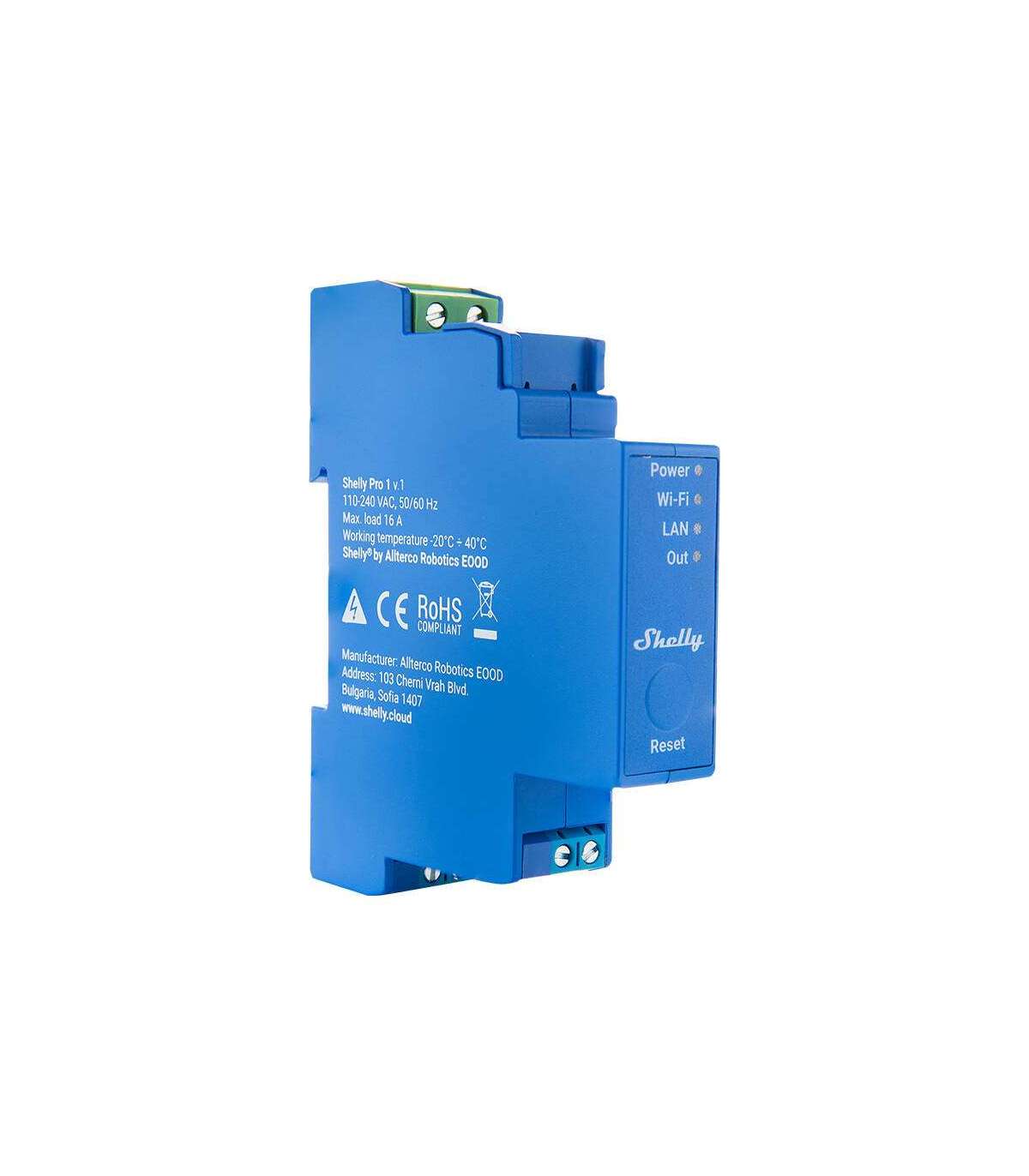 The Shelly Pro 1 is an advanced DIN rail-mounted relay with a single independent channel that can handle loads up to 16 A. With support for WiFi, LAN, and Bluetooth, it is well-suited for both home and building automation. It also integrates with popular voice assistants such as Google Assistant, Samsung SmartThings, and Amazon Alexa, allowing for even easier home control. Equipped with potential-free contacts, it provides great flexibility in handling various voltages and offers a wide range of possibilities in home automation. Furthermore, script functions enable the creation of custom automation scenarios based on different events, such as weather forecasts.