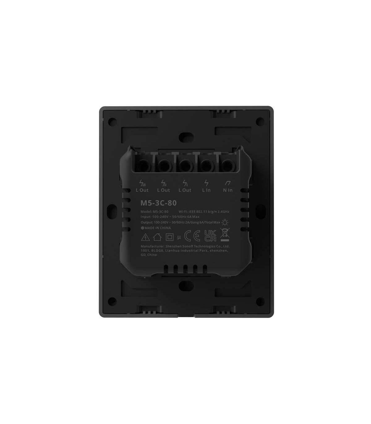 SONOFF M5-3C-80 is a three-channel mechanical WiFi smart wall switch that combines innovative technology with ease of use. With the eWeLink app, you have full control over the devices in your home, even when you are away. Operating the switch is extremely easy and convenient, even for the elderly. Whether you use the local button, the app, or voice commands, the SONOFF M5 provides convenience at every turn.