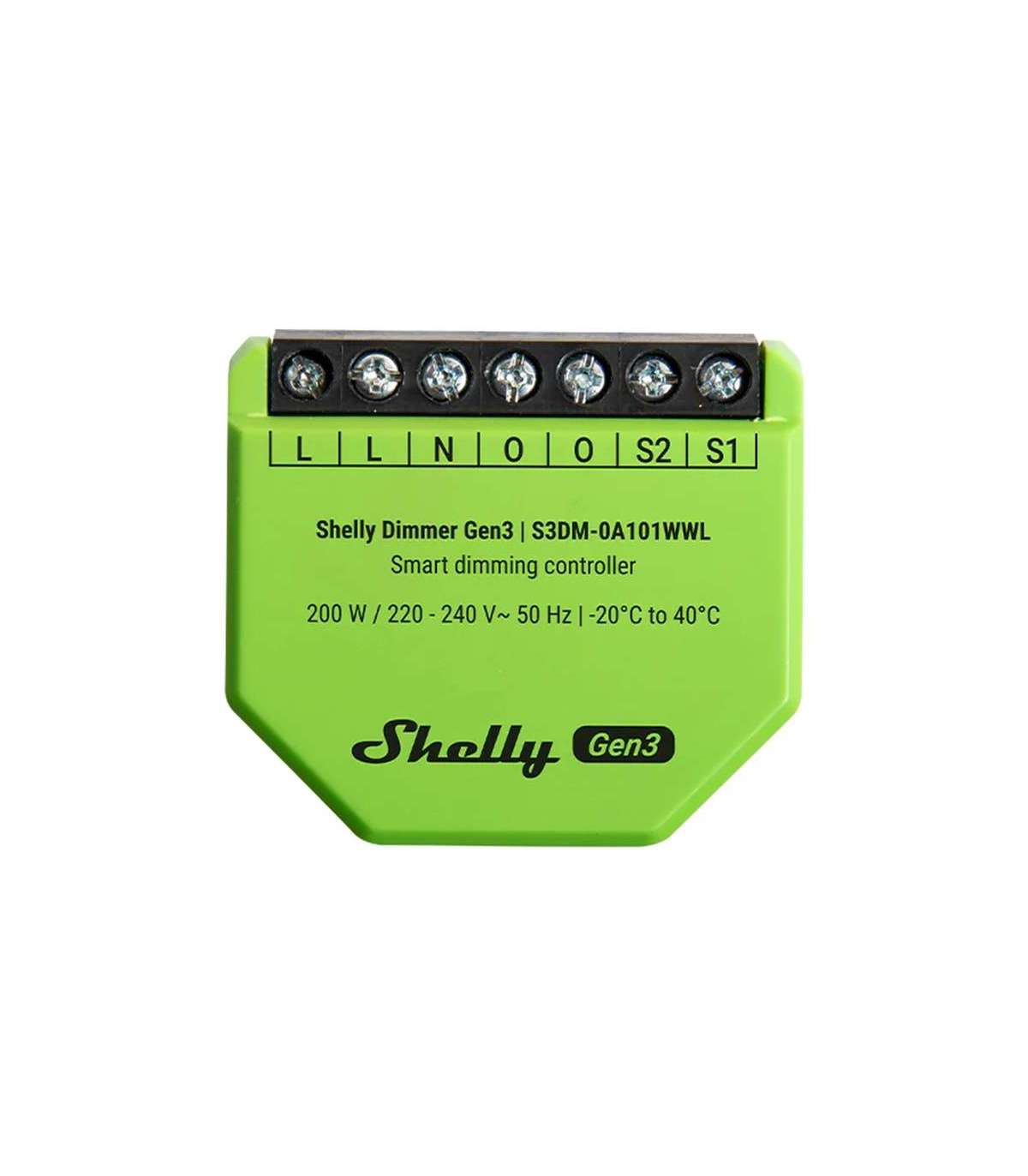 The Shelly Dimmer Gen3 is a compact, single-circuit light dimmer that allows precise control of lighting brightness from a smartphone, tablet, computer or home automation system. It works over a Wi-Fi local network without the need for an additional hub, and also supports remote control via the cloud. It can work with or without a neutral wire. The device also offers Wi-Fi signal amplification, interoperability with Bluetooth and BLE Gateway, and a range of automation options, including schedules, scripts and integration with systems like Home Assistant, Google Home, Alexa or SmartThings.
