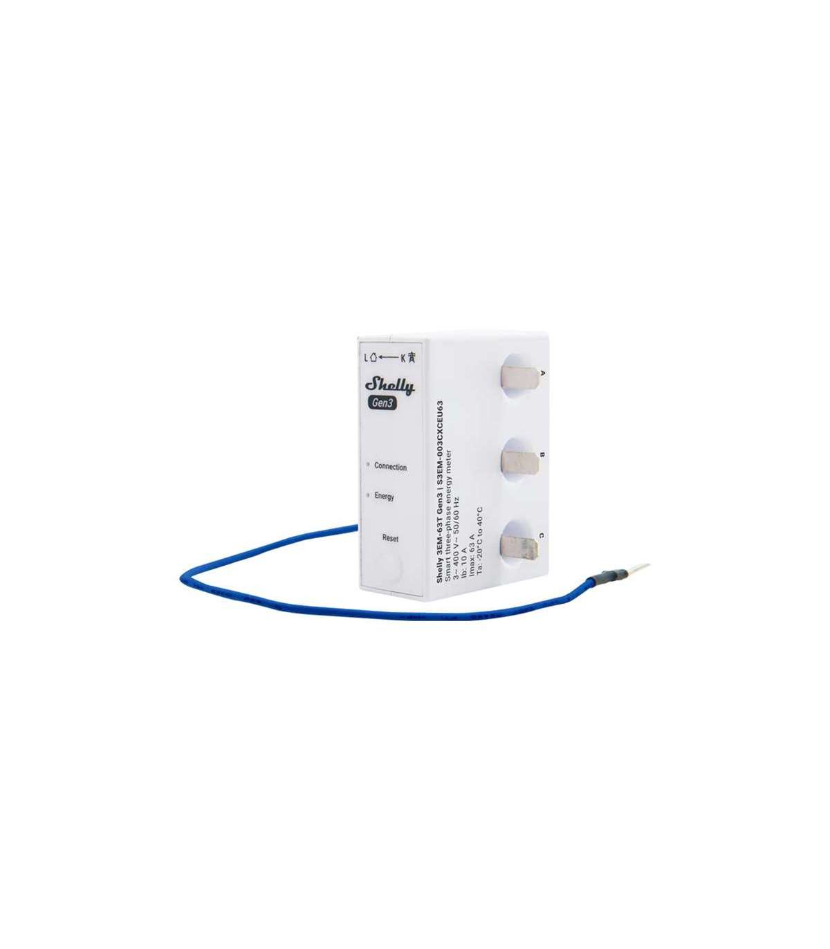 The Shelly 3EM-63T Gen3 is a compact 1/3-channel energy meter designed to monitor three-phase installations or three independent single-phase circuits. With its flat terminals and housing designed to be mounted above or below an overcurrent circuit breaker, it easily fits into standard switchboards. This small device is ideal for homes, apartments, businesses and photovoltaic installations - wherever precise control of energy consumption is important.