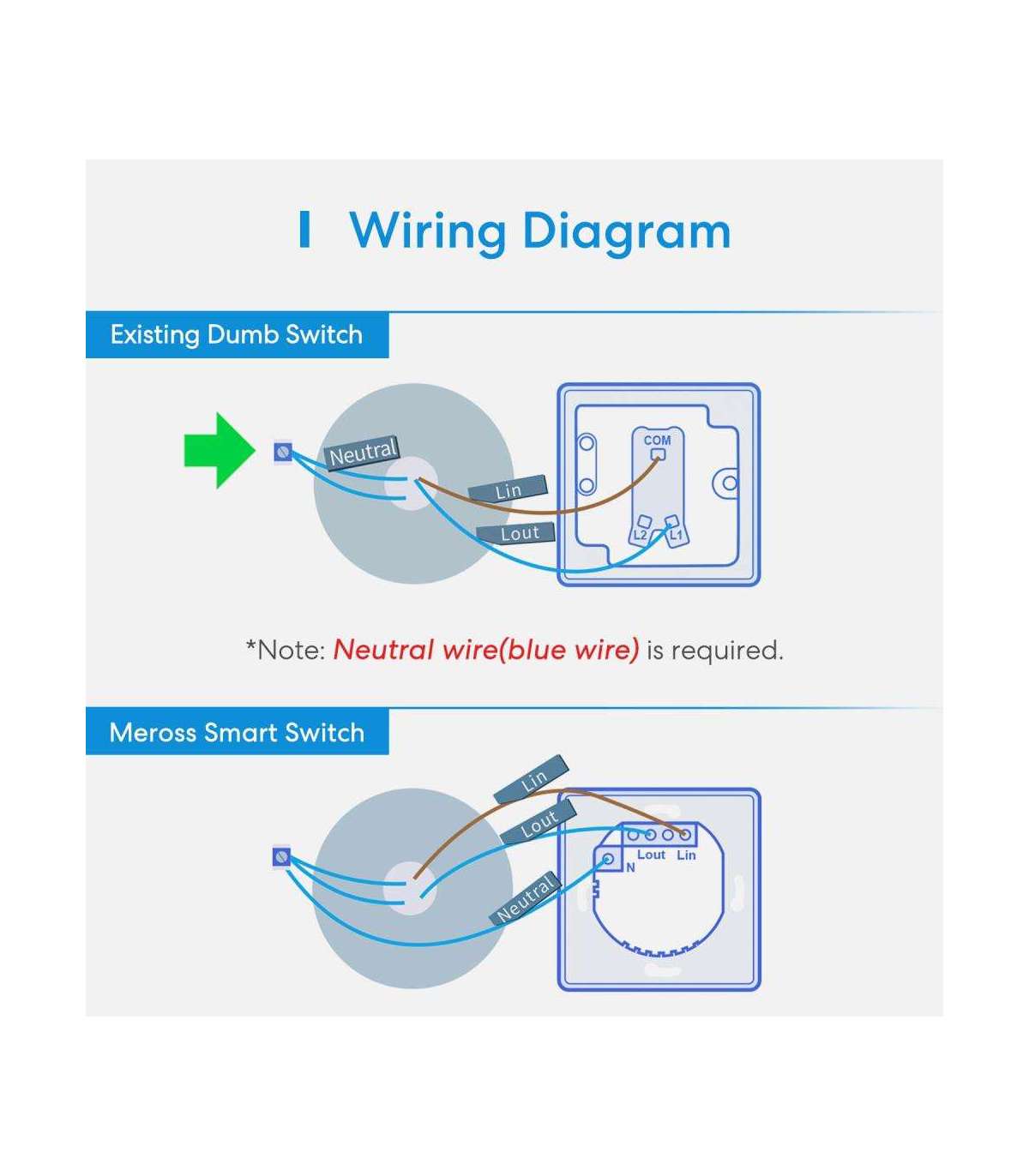 •Neutral wire (blue wire) required.