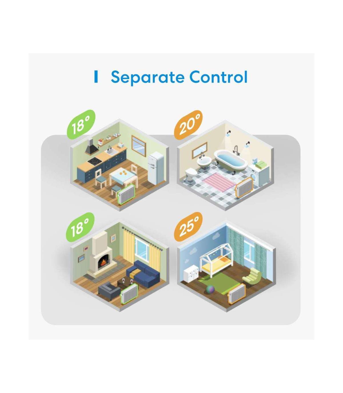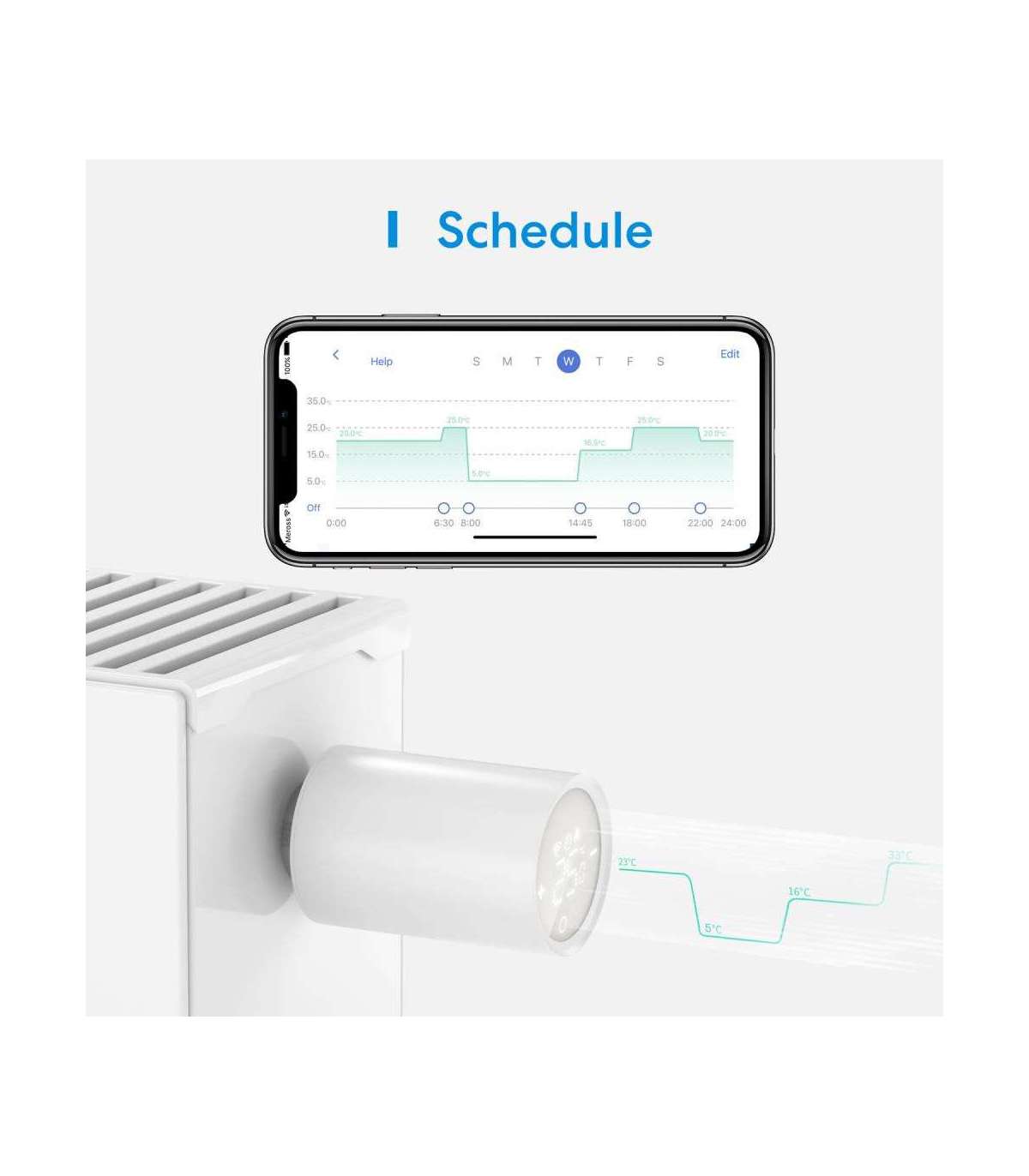 •Save your heating cost with the smart heating schedule. Never worry about arriving home with a cold room, or leaving the house with the radiator heating.