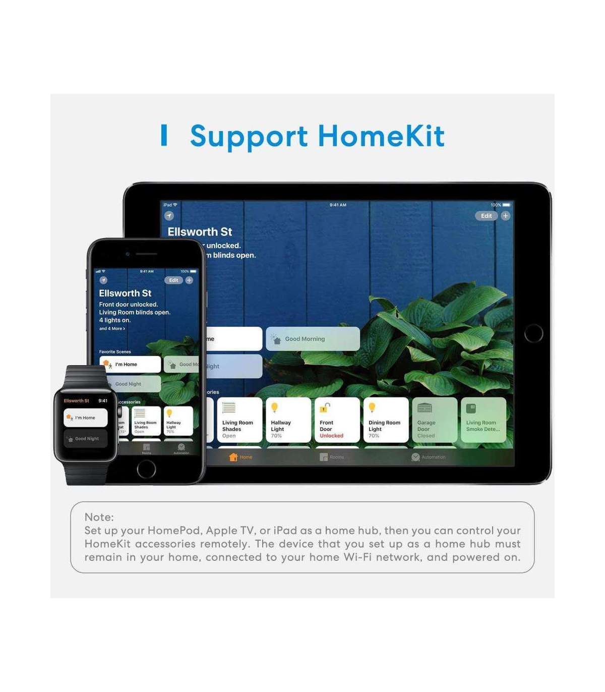 •Works with Apple HomeKit, Amazon Alexa, Google Assistant, and SmartThings.