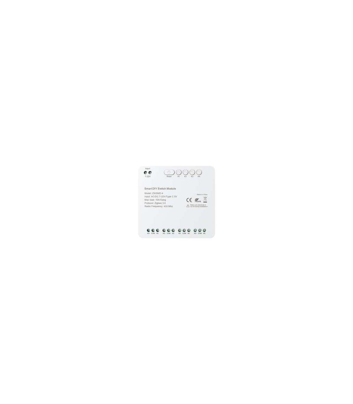 ZigBee 4-channel switch module with DC 32V voltage-free contact Avatto ZWSMMD-4-32V.