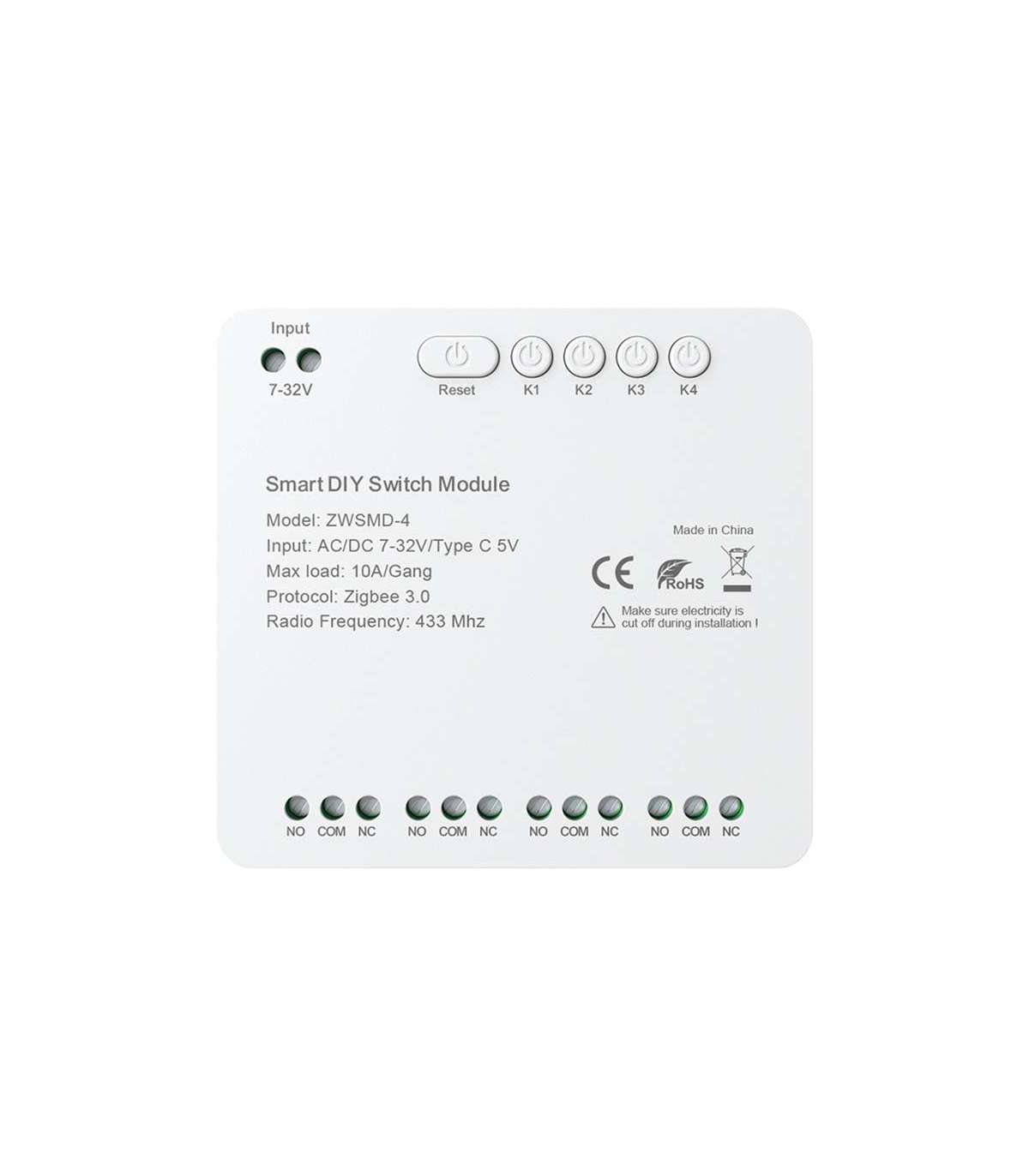 4-channel ZigBee switch module with voltage-free DC 32V contact Avatto ZWSMMD-4-32V