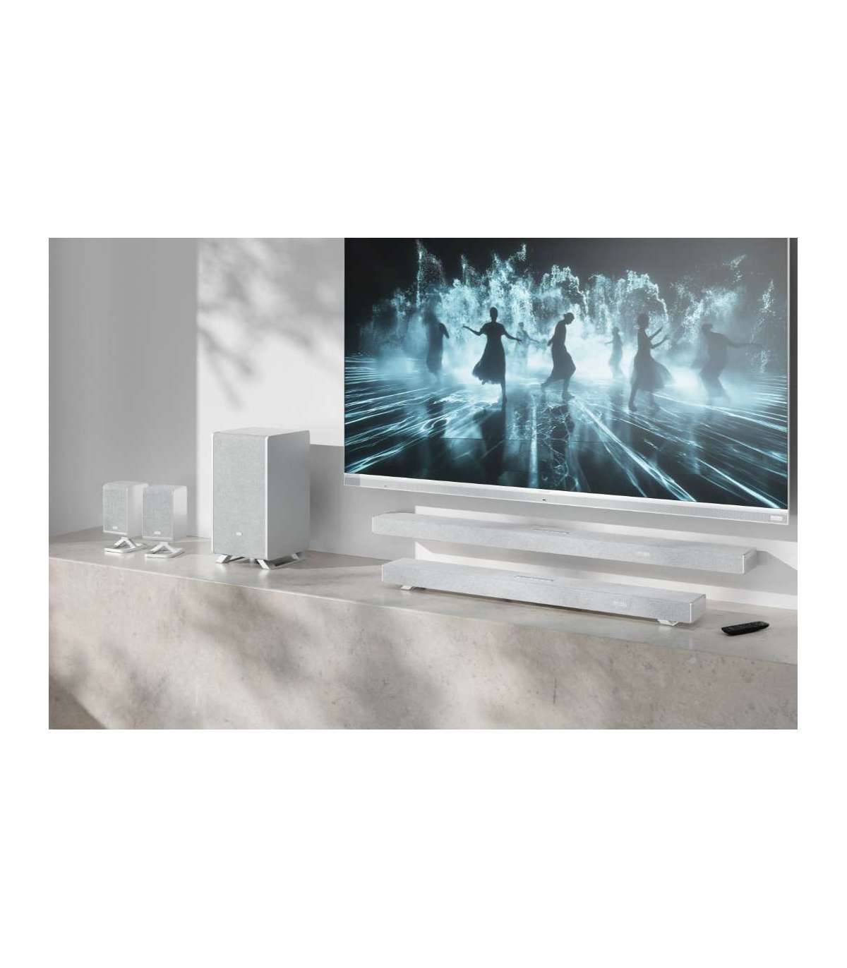 Valge LED alfanumbriline segmentekraan; Juhtmevaba subwoofer pakub kinolikku elamust ilma juhtmete tüütuseta; 4K läbivool kahe HDMI-sisendiga teleri ühenduvuse laiendamiseks