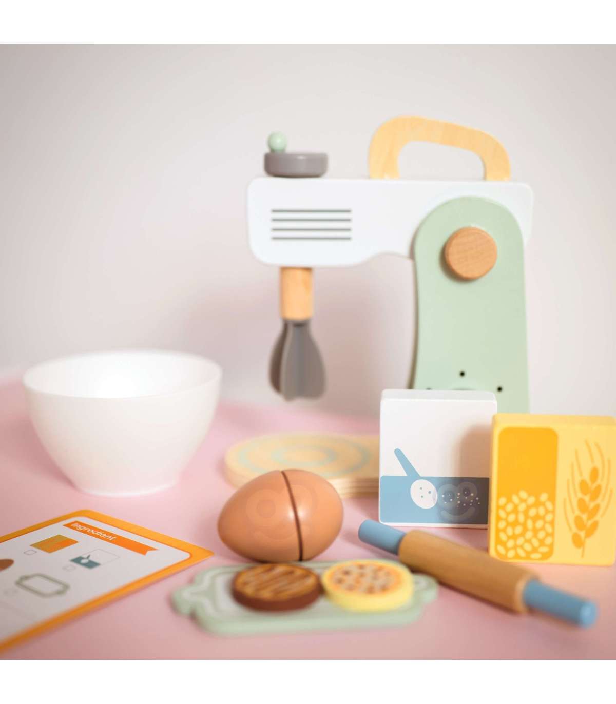 Pora na coś słodkiego! Tym razem to Twoje dziecko przygotuje deser dla całej rodziny. Zabawa mikserem pobudza wyobraźnię, rozwija kreatywność i wspiera umiejętność naśladowania dorosłych – czyli to, co dzieci kochają najbardziej. Drewniane elementy są bezpieczne i przyjemne w dotyku, a pastelowe kolory dodają uroku każdej dziecięcej kuchni.