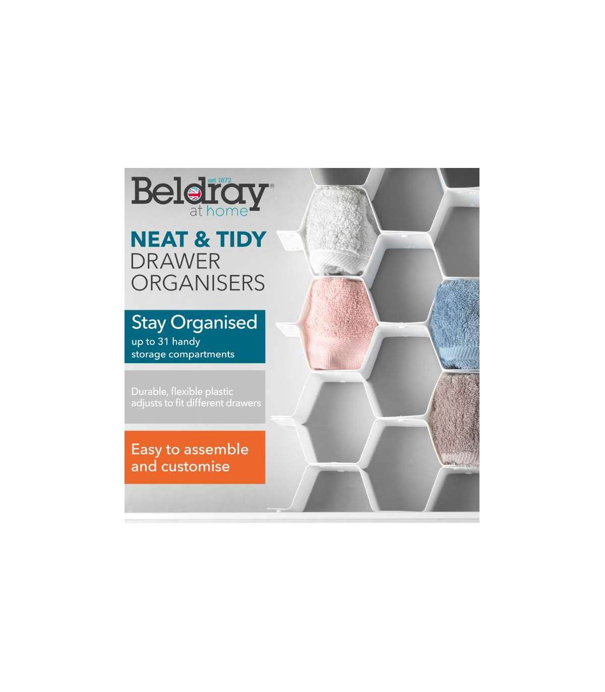 Kasutage oma panipaika maksimaalselt ära nende Beldray sahtlite hoidjatega, mis sobivad ideaalselt lipsude, beebiriiete, meigi ja muu hoidmiseks.