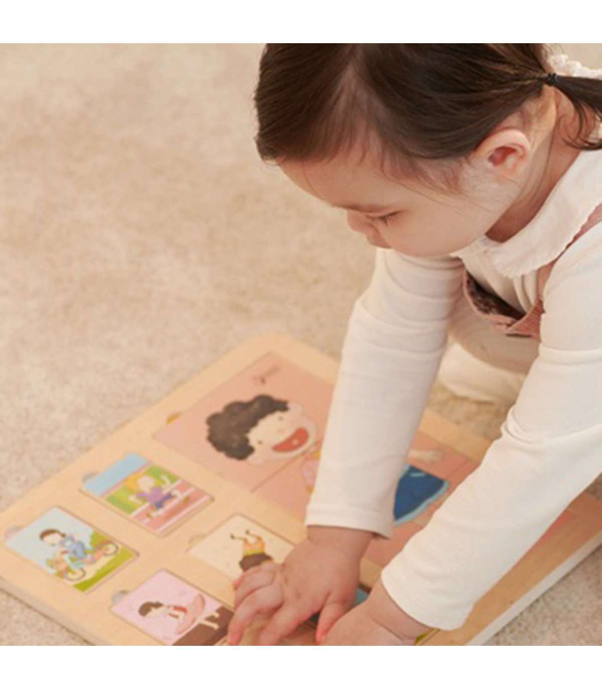 Puidust värvilised klotsid marki Classic World lastele alates 12 kuu vanusest on ideaalne lahendus nii kodus kui ka lasteaias. Komplekt koosneb lauast, millel on 18 värvilist klotsi, millel on maalitud lapsed, kes teevad erinevaid harjutusi; tükid tuleb lauaga sobitada nii, et tekiks terve pilt. Puidust alusel on urked, mis oma kujult vastavad värvilistele pusletükkidele. Tänu mänguasjale areneb lapse silma-käe koordinatsioon.